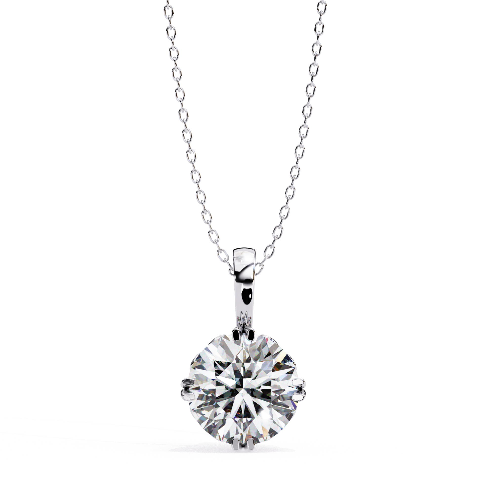 Secured in a traditional Six Prong Diamond Pendant setting, this solitaire pendant design provides maximum light exposure for unparalleled brilliance. Featuring a sleek and polished White Gold Solitaire Pendant design, this solitaire pendant combines modern sophistication with classic sunning.