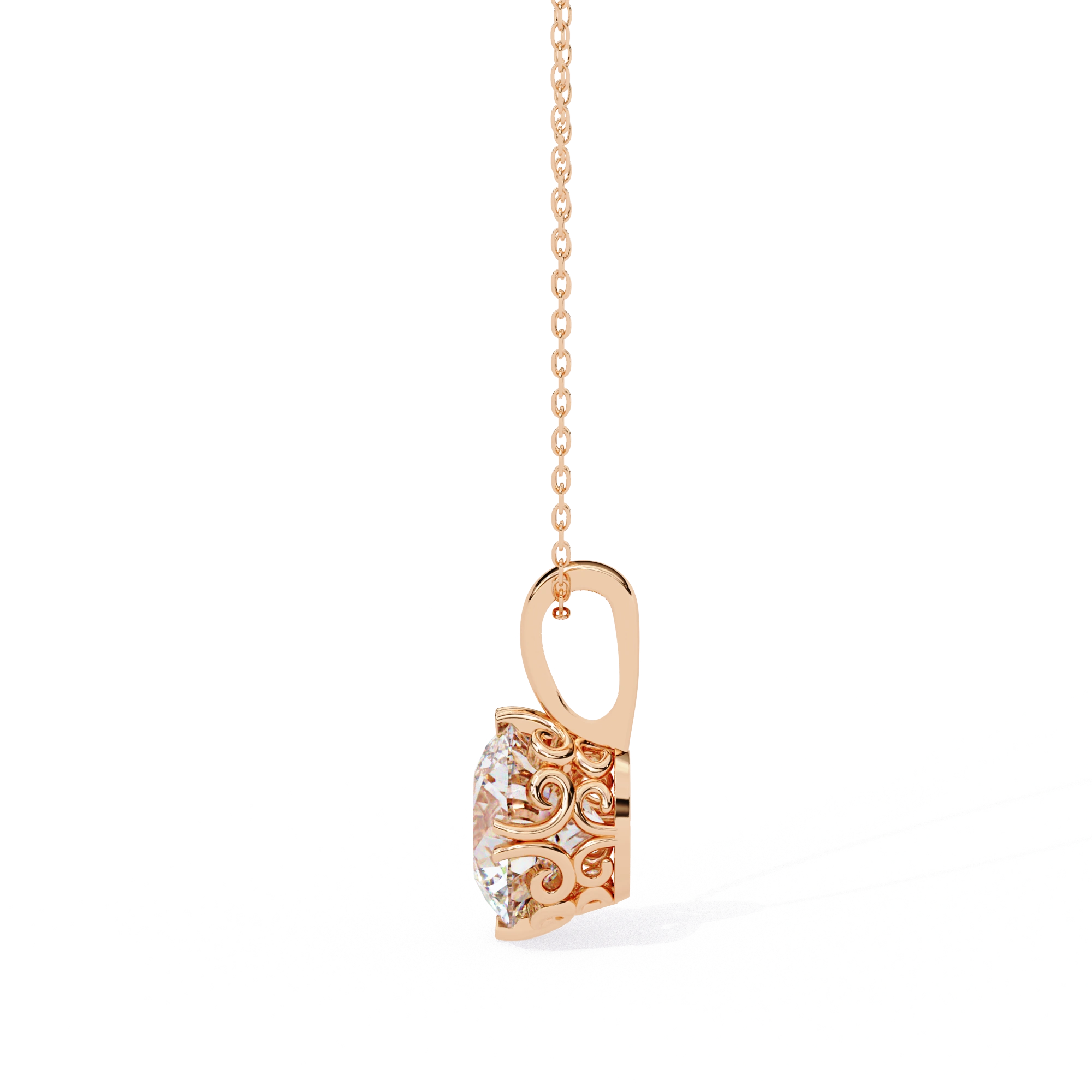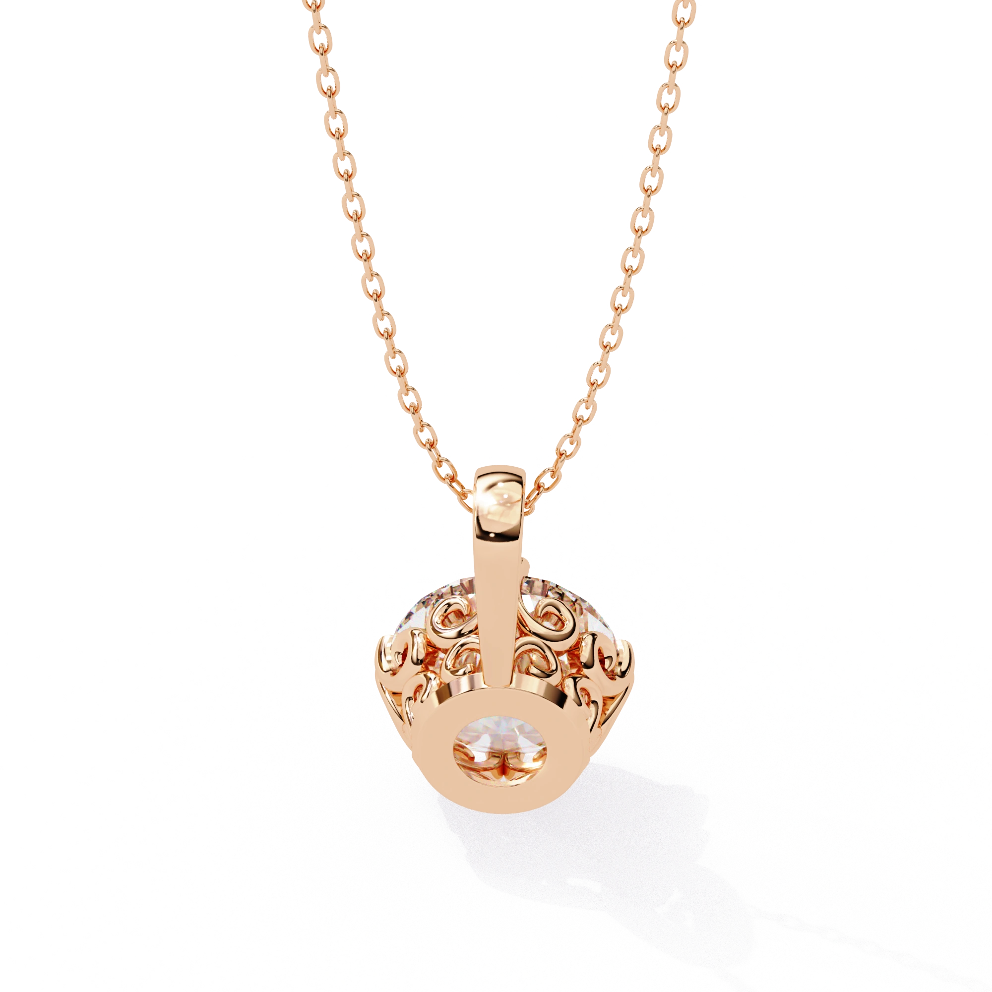 Round Lab Diamond Solitaire Pendant Six Prong Rose Gold