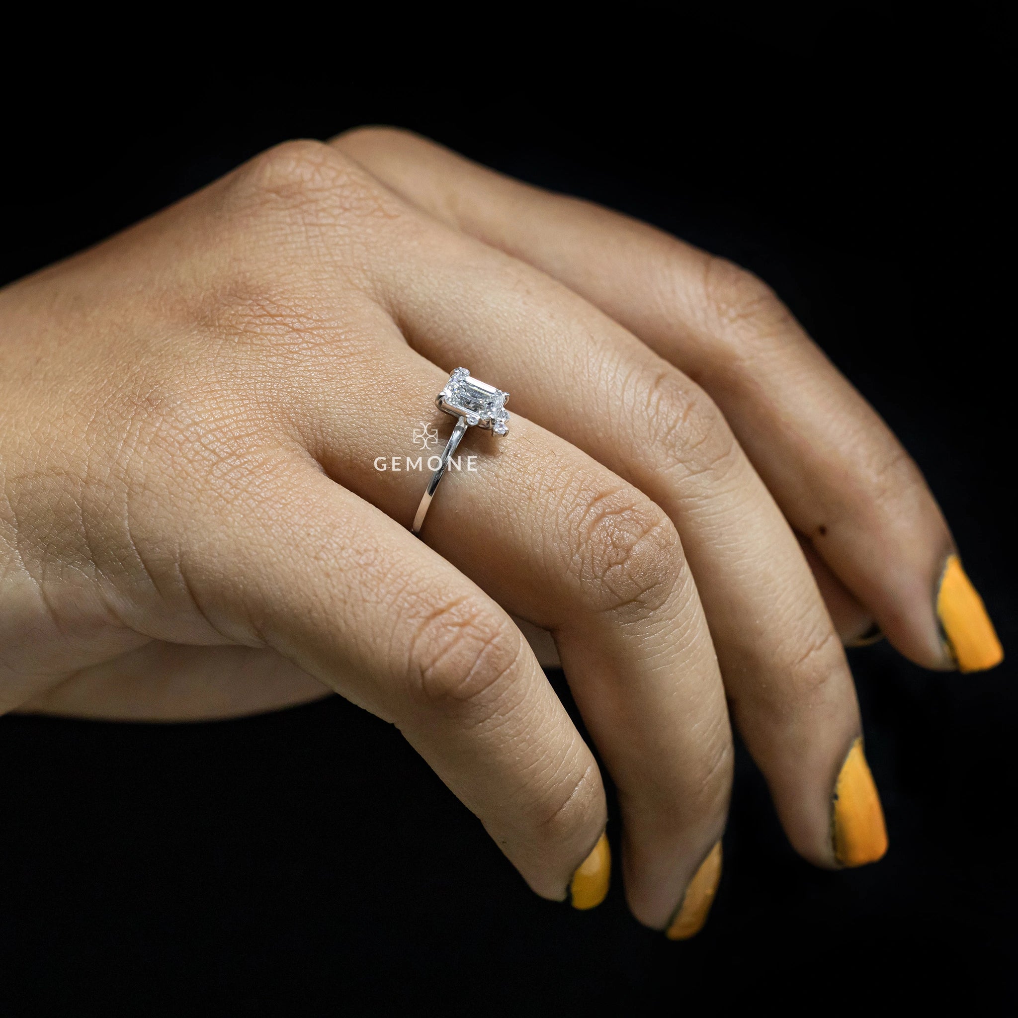 1.50 Carat Emerald Shape Five Stone Lab Diamond Ring