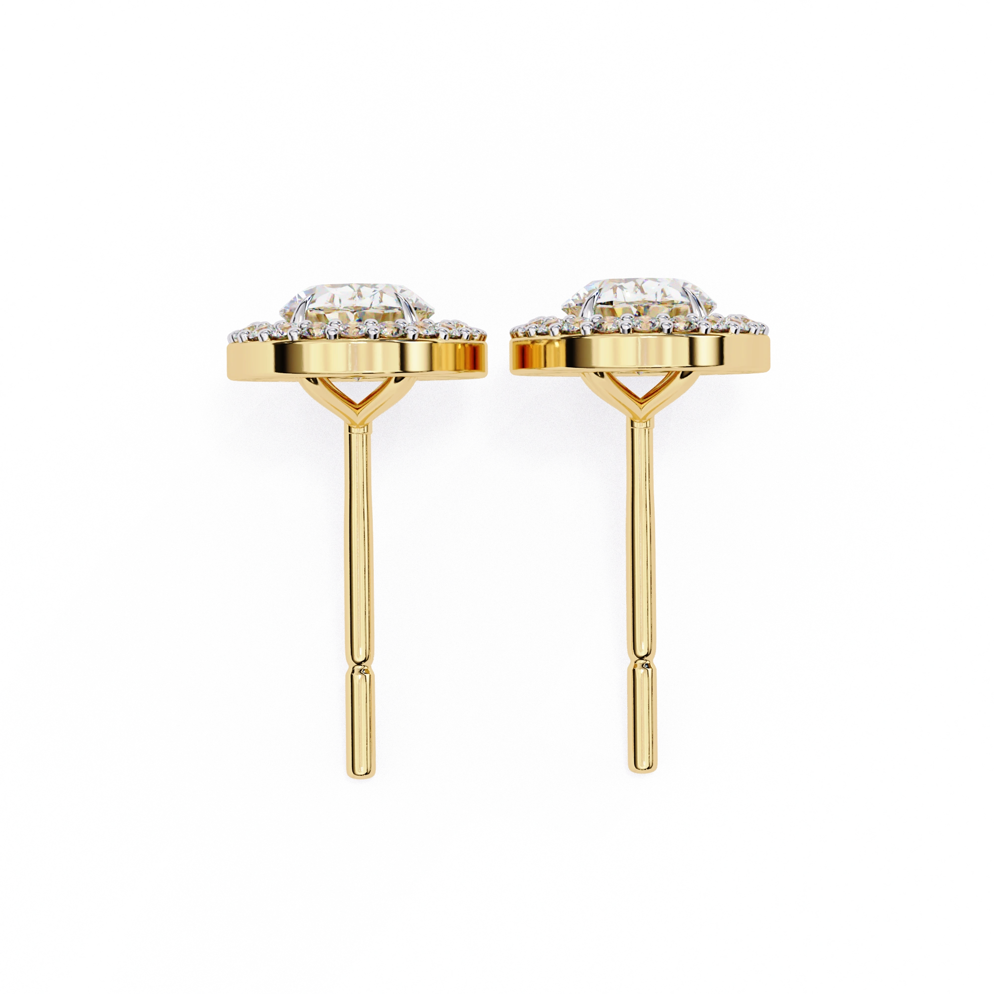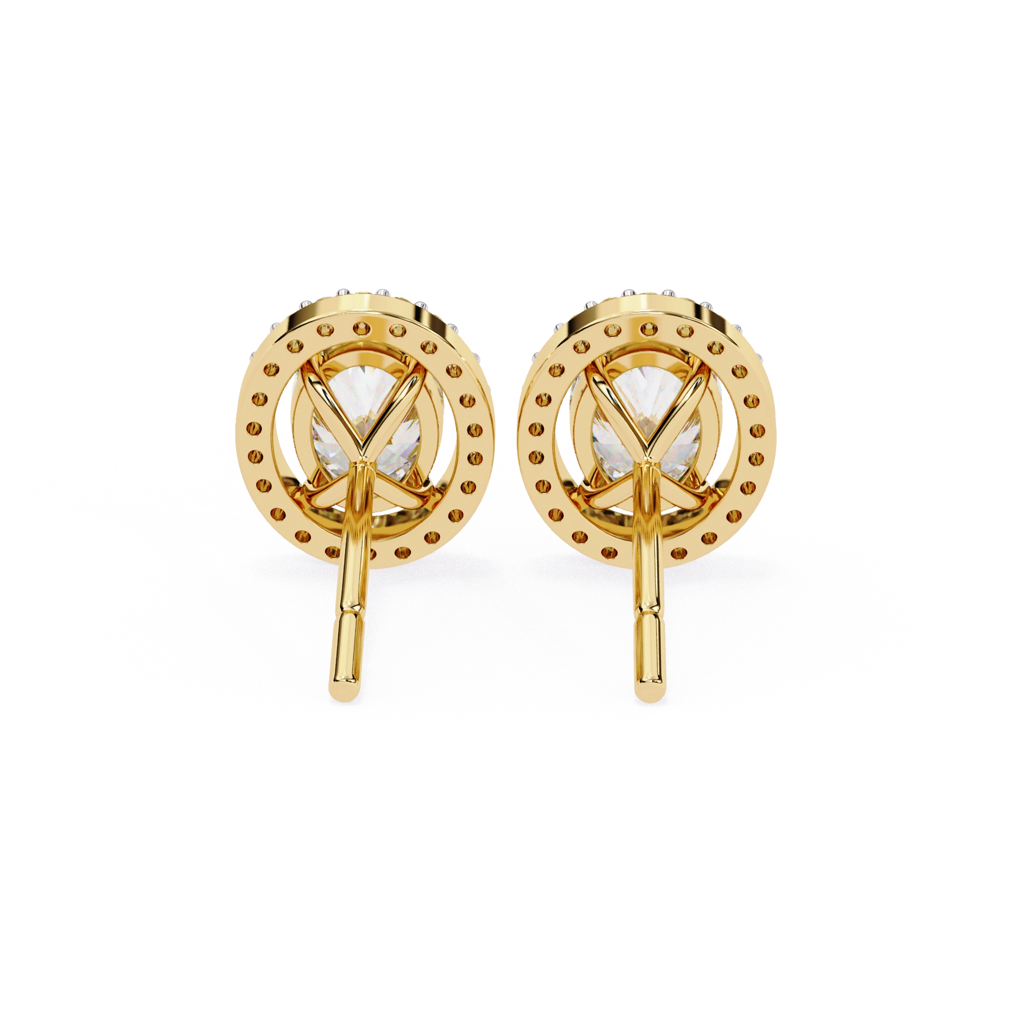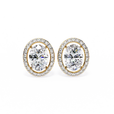 0.40 Carat Oval Diamond Halo Stud Earrings in Gold