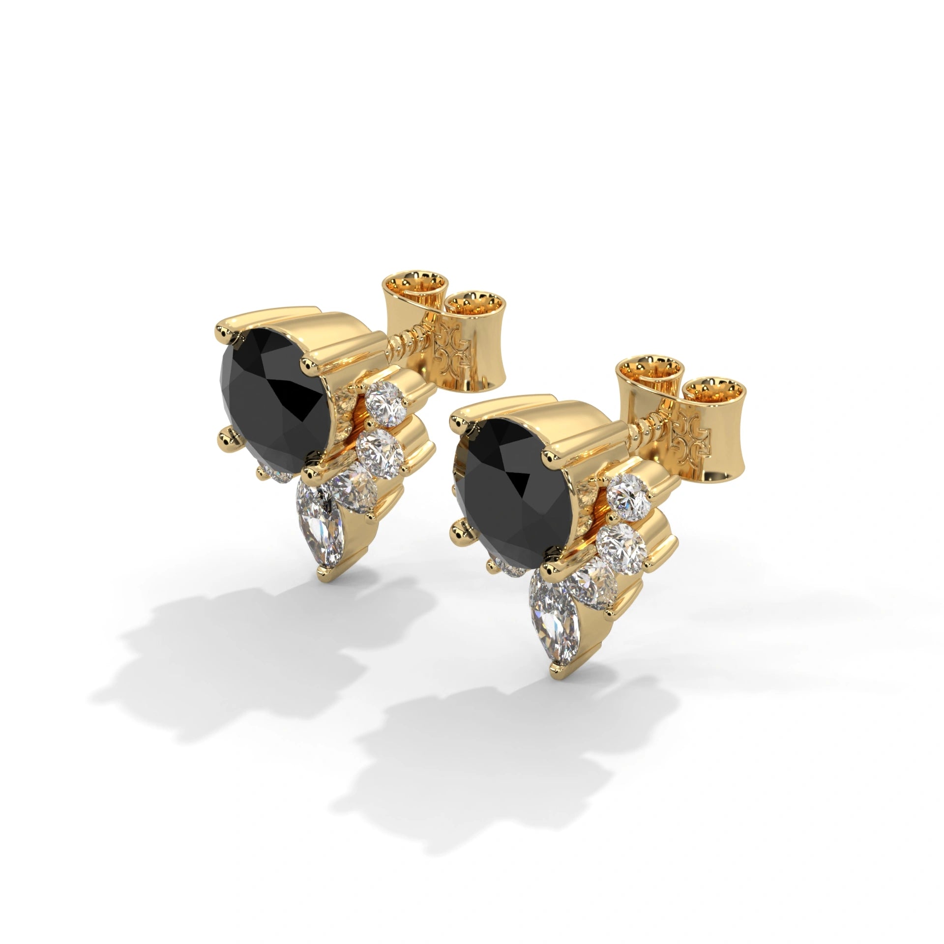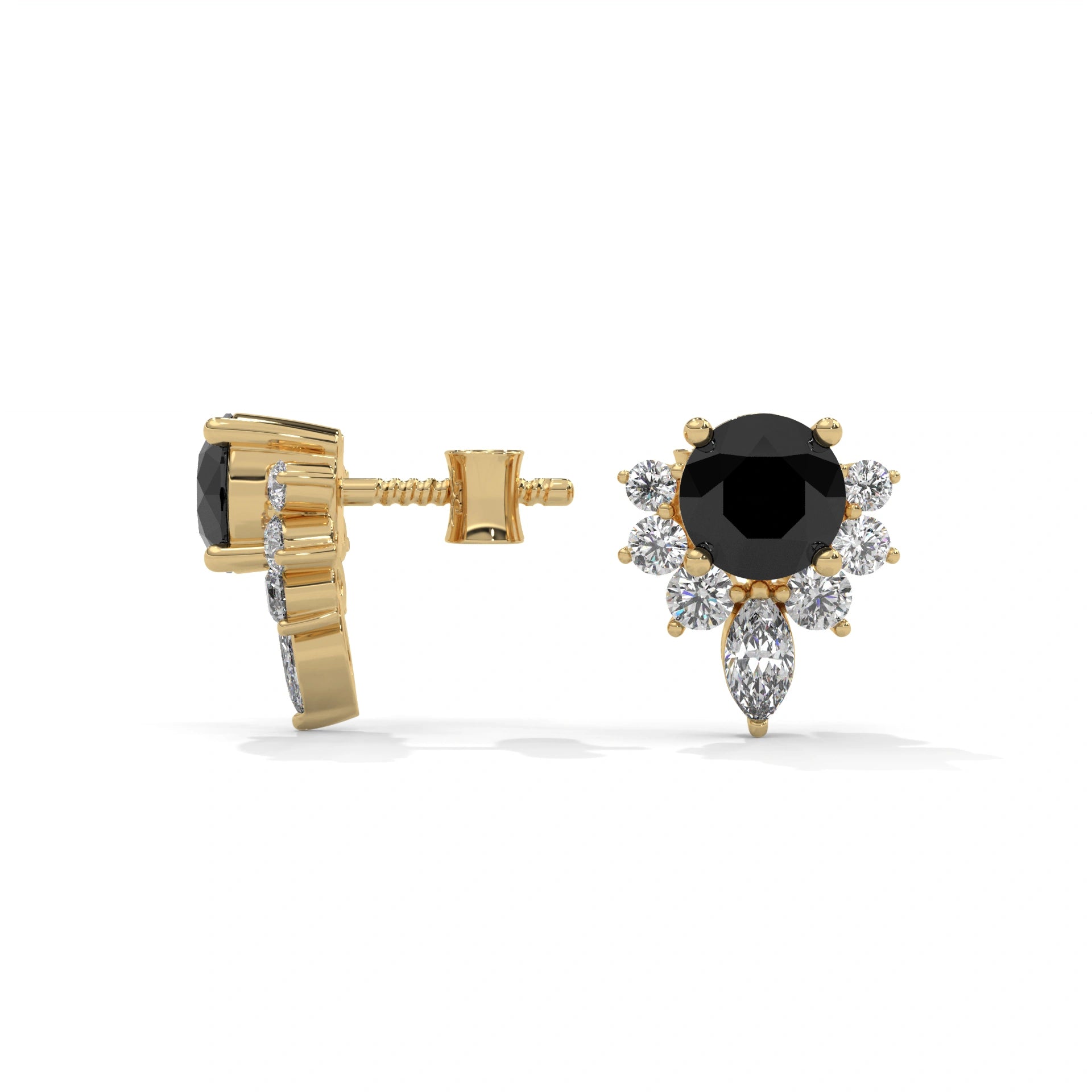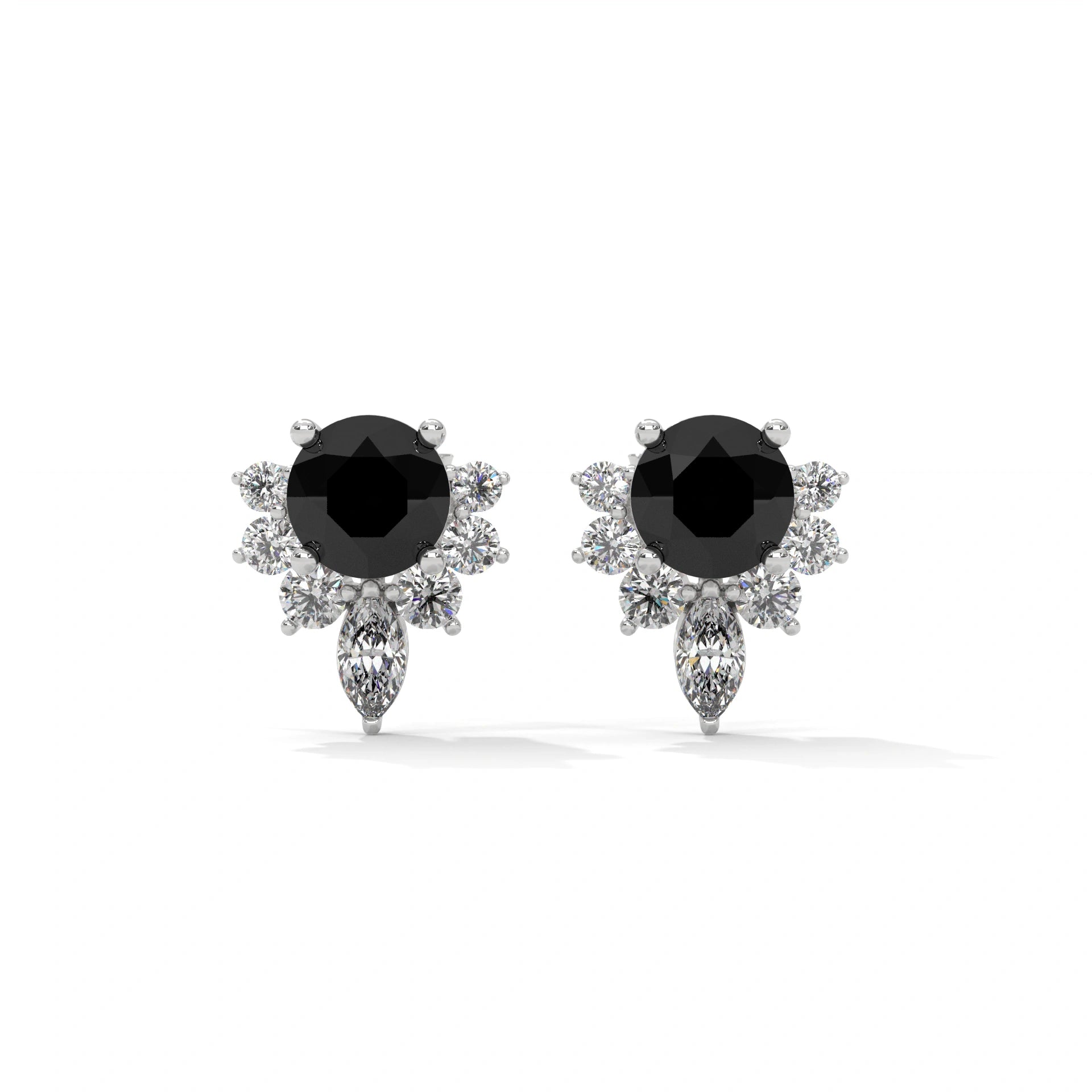 Step Into A World Of Striking Style With These 0.71 Carat Cluster Stud Earrings. At The Heart Of This Design Lies A Deep, Captivating Round-Cut Black Diamond, Held Securely In A Prong Setting And Surrounded By Sparkling Round-Cut And Marquise-Cut White Diamonds In Prong Settings That Create Dazzling Contrast With Every Glance. This Mix Of Bold Black Depth And Shimmering White Shapes Makes These Black Diamond Women’s Earrings A Standout Choice For Birthdays, Anniversaries, Or Meaningful Gifts, Symbolizing Balance, Growth, And Timeless Individuality.