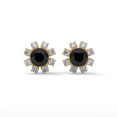 Step Into A World Of Striking Style With These 1.46 Carat Black And White Diamond Stud Earrings Featuring A Floral Design. At The Heart Of This Design Lies A Deep, Captivating Round-Cut Black Diamond, Surrounded By Clusters Of Sparkling White Diamonds In A Blooming Floral Pattern That Creates Dazzling Contrast With Every Glance. This Mix Of Bold Black Depth And Delicate White Petals Makes These Black And White Diamond Chunky Earrings A Standout Choice For Birthdays, Anniversaries, Or Meaningful Gifts, Symbolizing Growth, Balance, And Timeless Individuality.