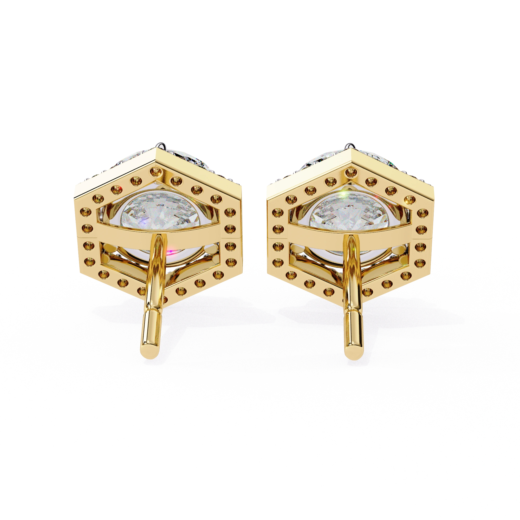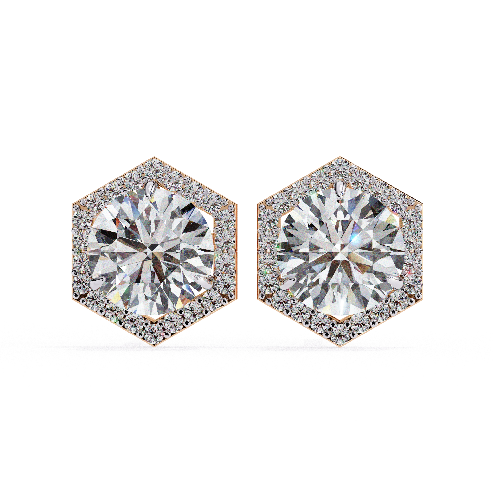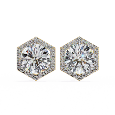 2.1 Carat Square Diamond Earrings Hexagon Halo Design