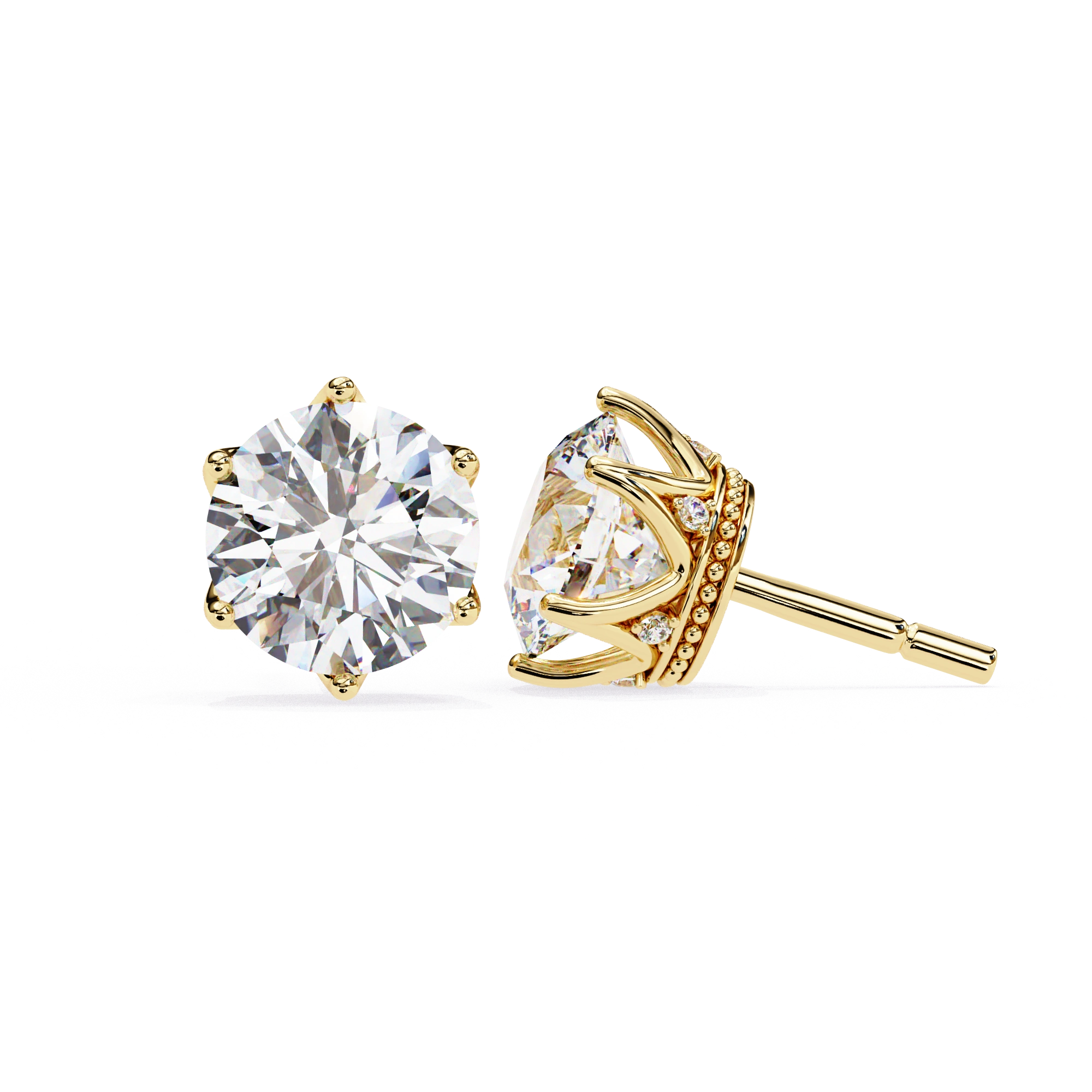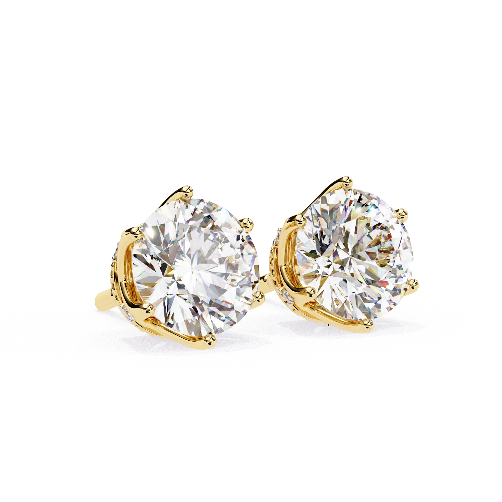 A Pair Of Lab-Grown Diamond Earrings (2.66 Carats) That Dazzle In Yellow Gold With Dazzling Oversized Round Illusion Cuts For A Larger Then Life Sparkle And Huge Presence. Very Powerful And Versatile Style, Perfect For Birthday, Anniversary, Or Everyday Luxury Gifts. Featuring A Six-Prong Crown Setting And Detailed Gallery Under The Diamond To Create A Stunning Pair Of Flat Back Stud Earrings. Chosen For Their Very High Clarity And Brilliance Ratings, The Round Brilliant Cuts Provide Exceptional Light Performance Using An Illusion Design To Add Dazzling Sparkle To Both Daily Wear And Special Occasions. Made From Luxurious Yellow Gold For Great Durability And A Beautiful Polished Finish, The Secure Prong Settings Hold The Natural Diamonds Very Securely With Maximum Light High Up The Diamond, Creating The Perfect Match Of Dazzling Brilliance And Sparkle, For Daily Use And Special Events.