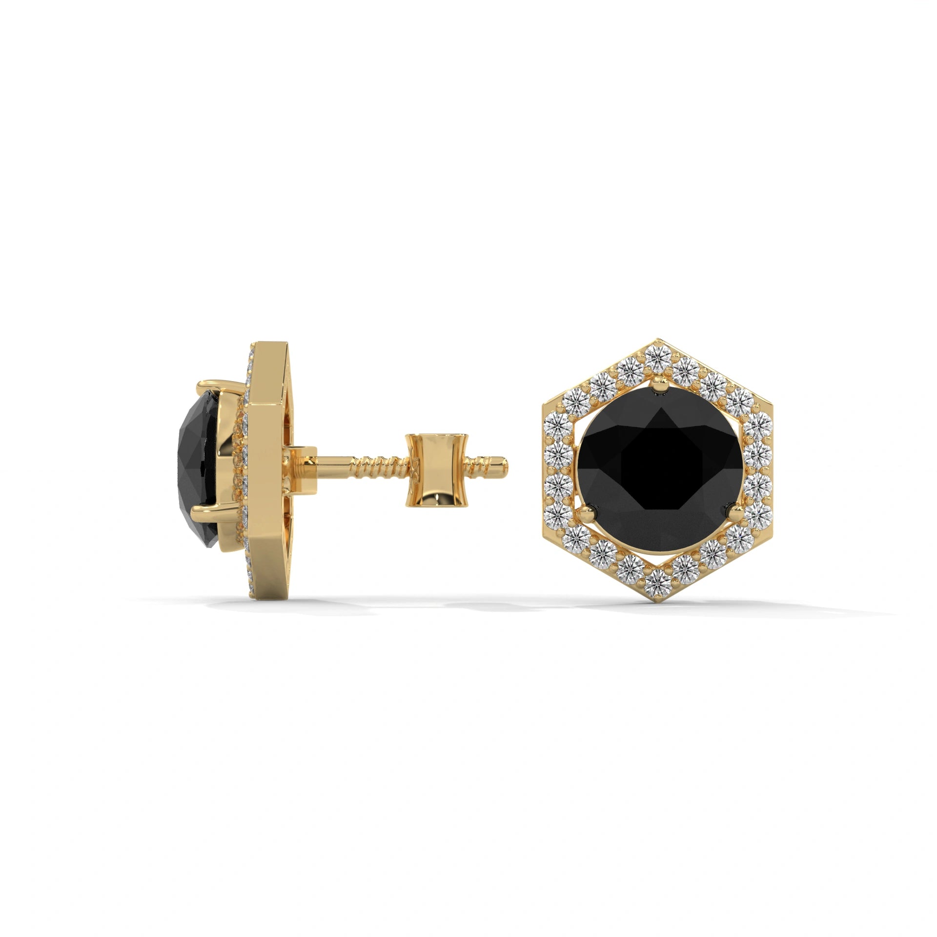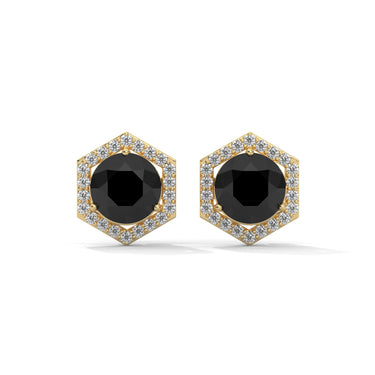 3 Ct Black Diamond Hexagon Halo Stud Earrings With Screw Back