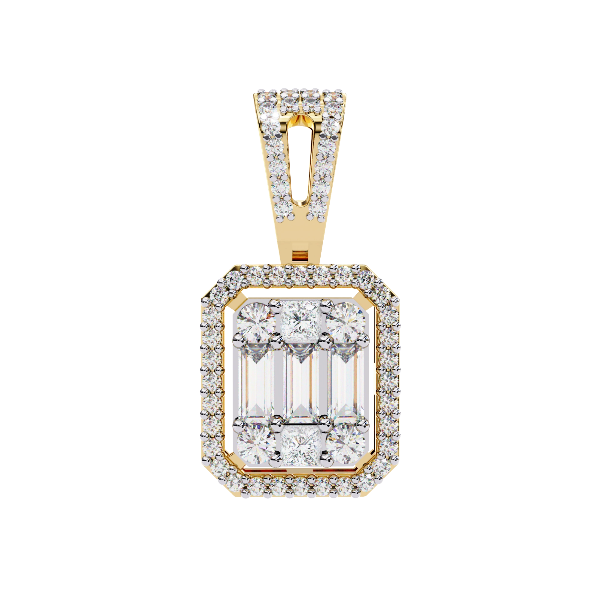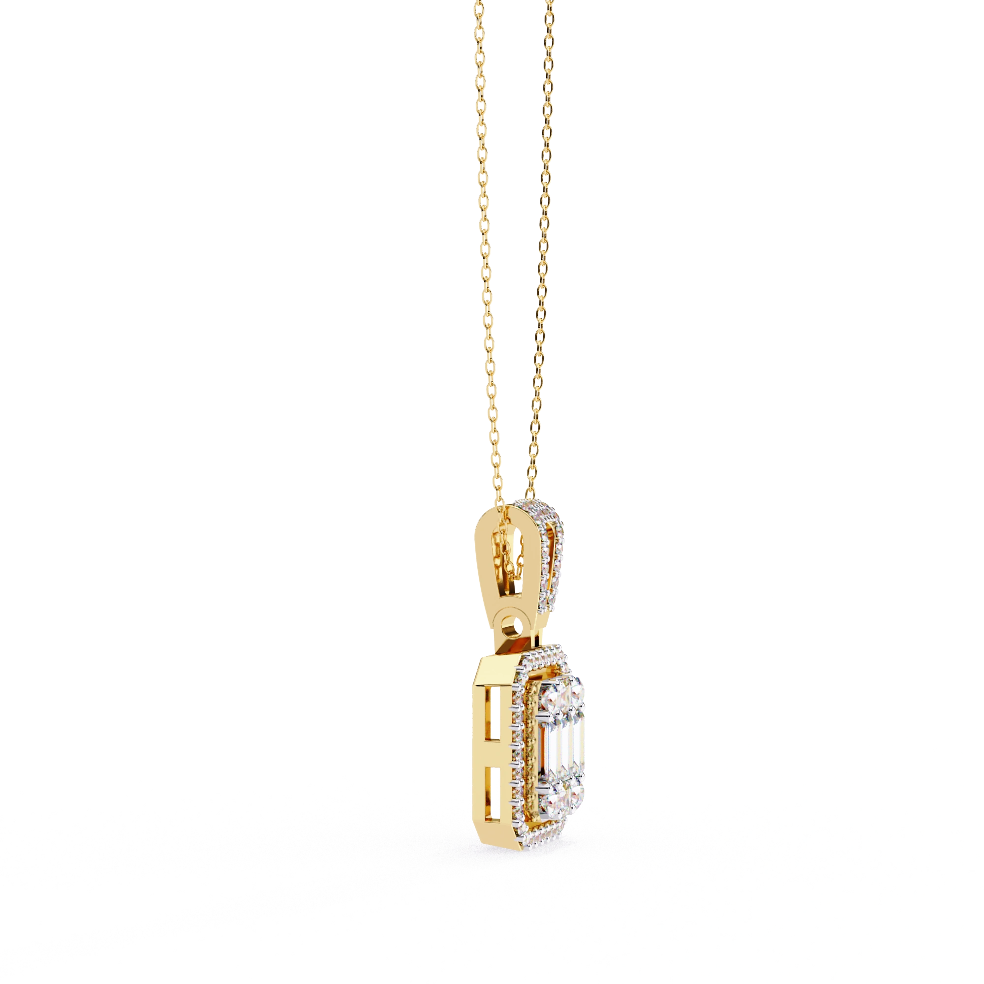 A border of small diamonds around the center cluster provides additional sparkle without adding too much weight to the piece. This intricate frame design makes the Cluster Diamond Pendant look like an edgy square, and here you still get to wear it with any outfit. Crafted in yellow gold, this Lab Grown Diamond Pendant is made with conflict-free stones that offer the same look as natural diamonds. This stylish Product Type: Emerald Shape Cluster Pendant