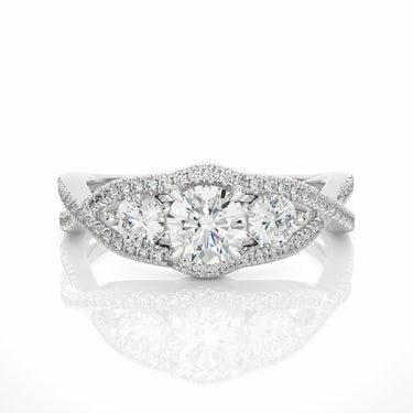 1.10 Ct Round Cut Criss Cross 3 Stone Halo Diamond Engagement Ring In Rose Gold