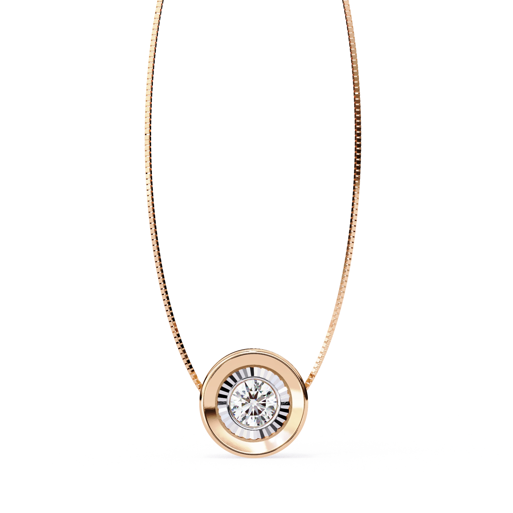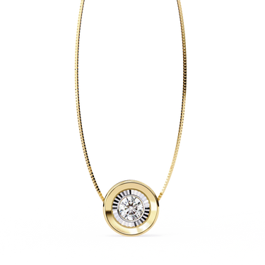 This 0.25ct Round Lab Diamond Two-Tone Bezel Pendant is the perfect dainty option that will add a touch of glam to your casual look. Middle Round Lab Diamond Pendant The centrally placed round stone cut to clean sparkle in a brilliant size.