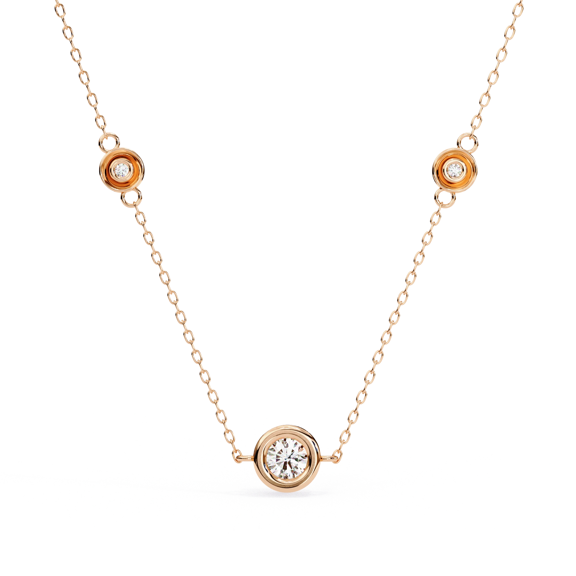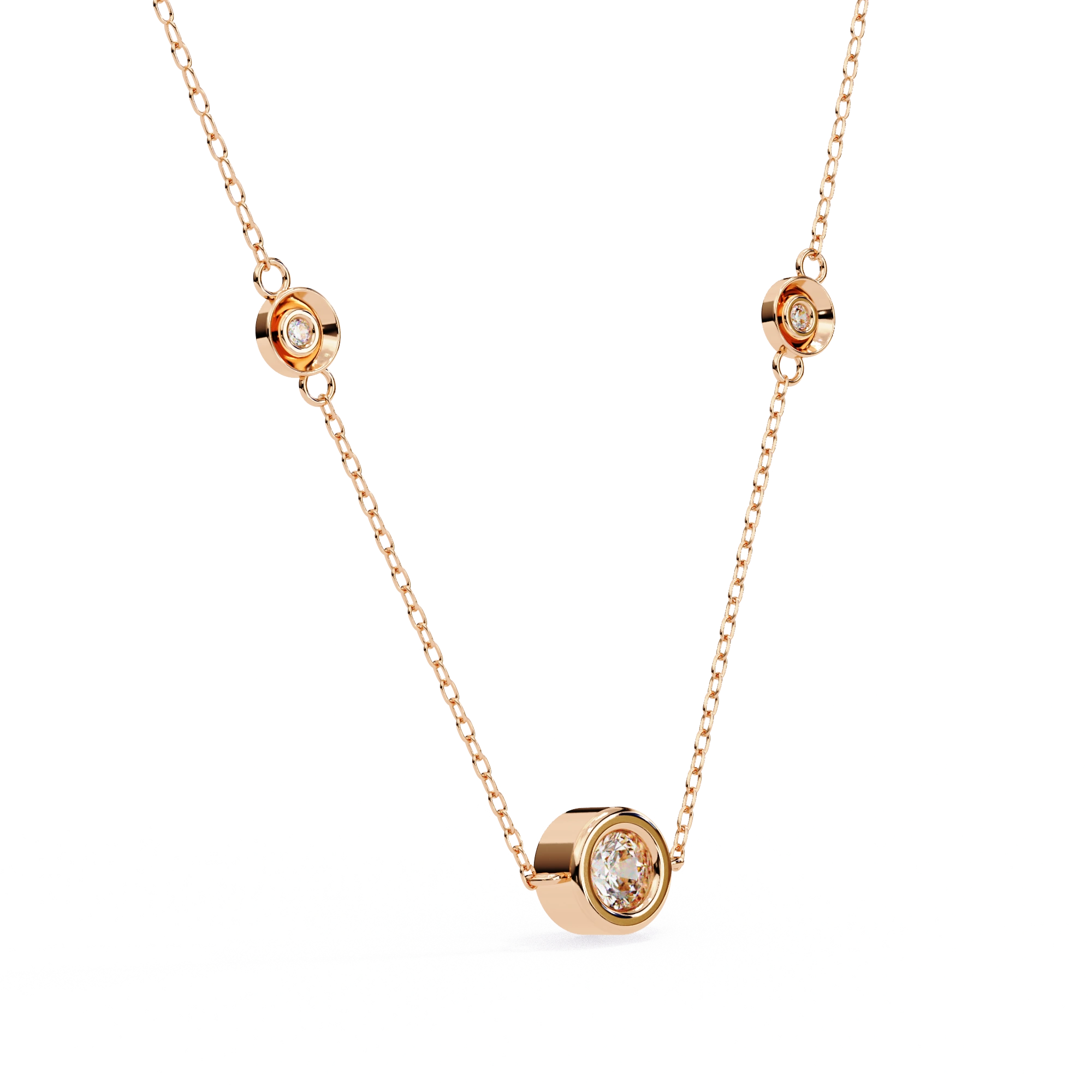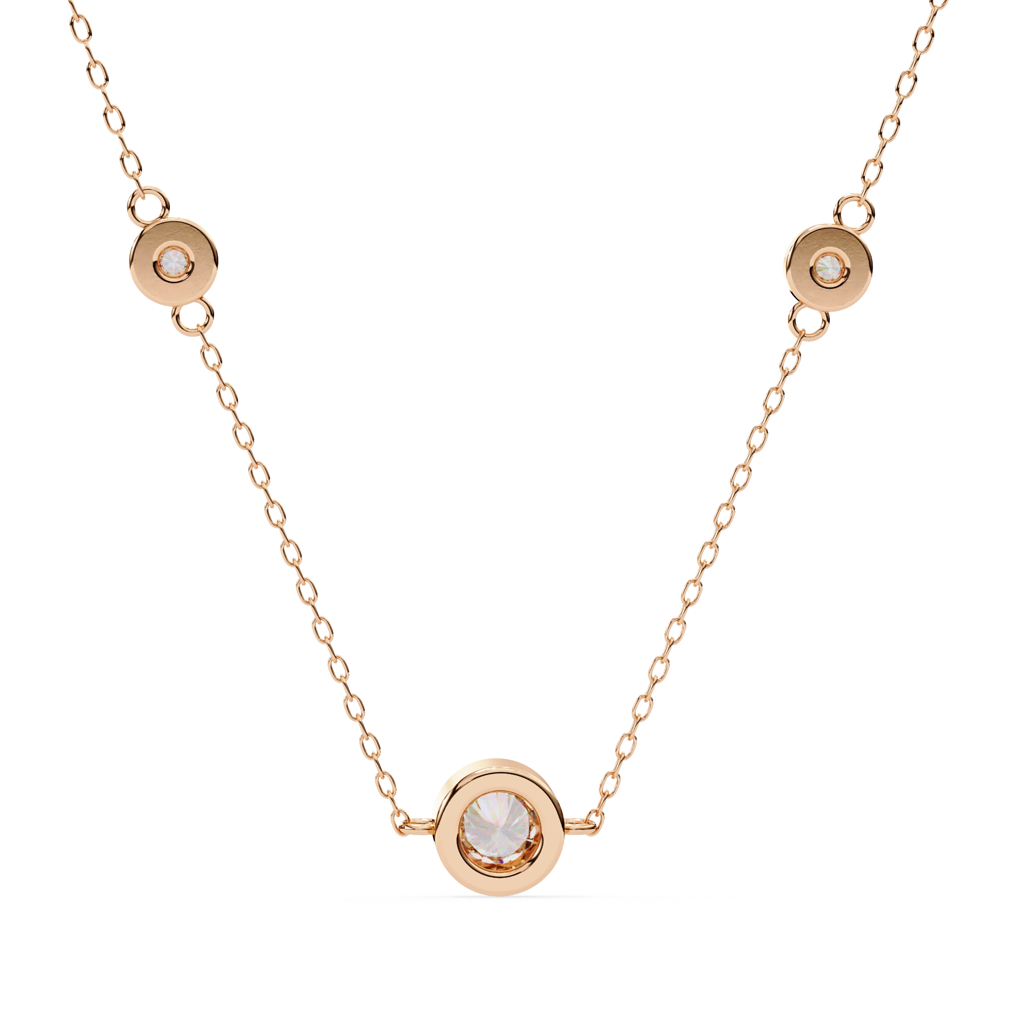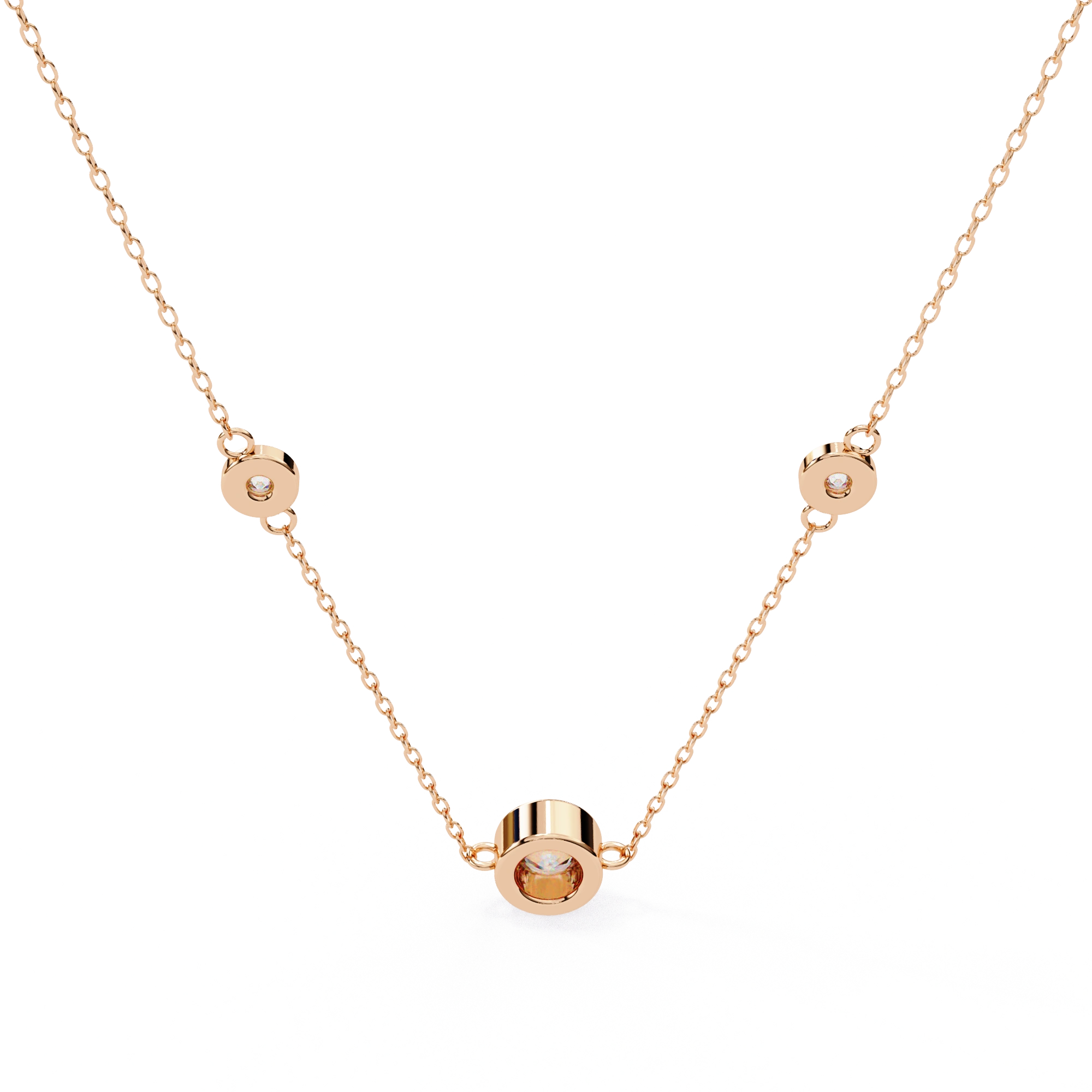 Round Cut Lab Diamond Bezel Set Necklace In Rose Gold