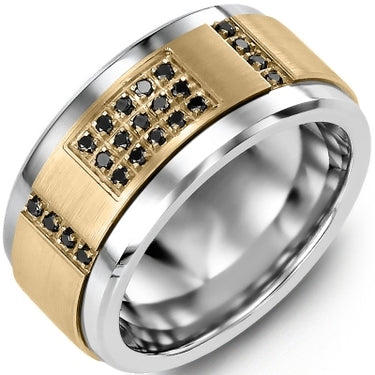 0.23 Carat Round Cut Pave Setting Black Diamond Wedding Band In Yellow Gold