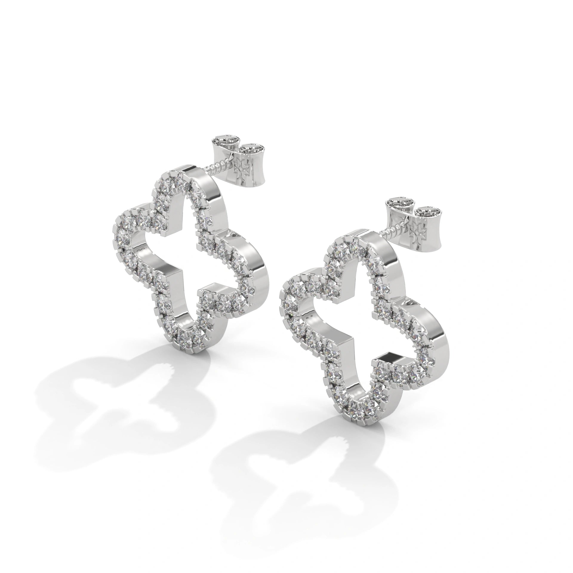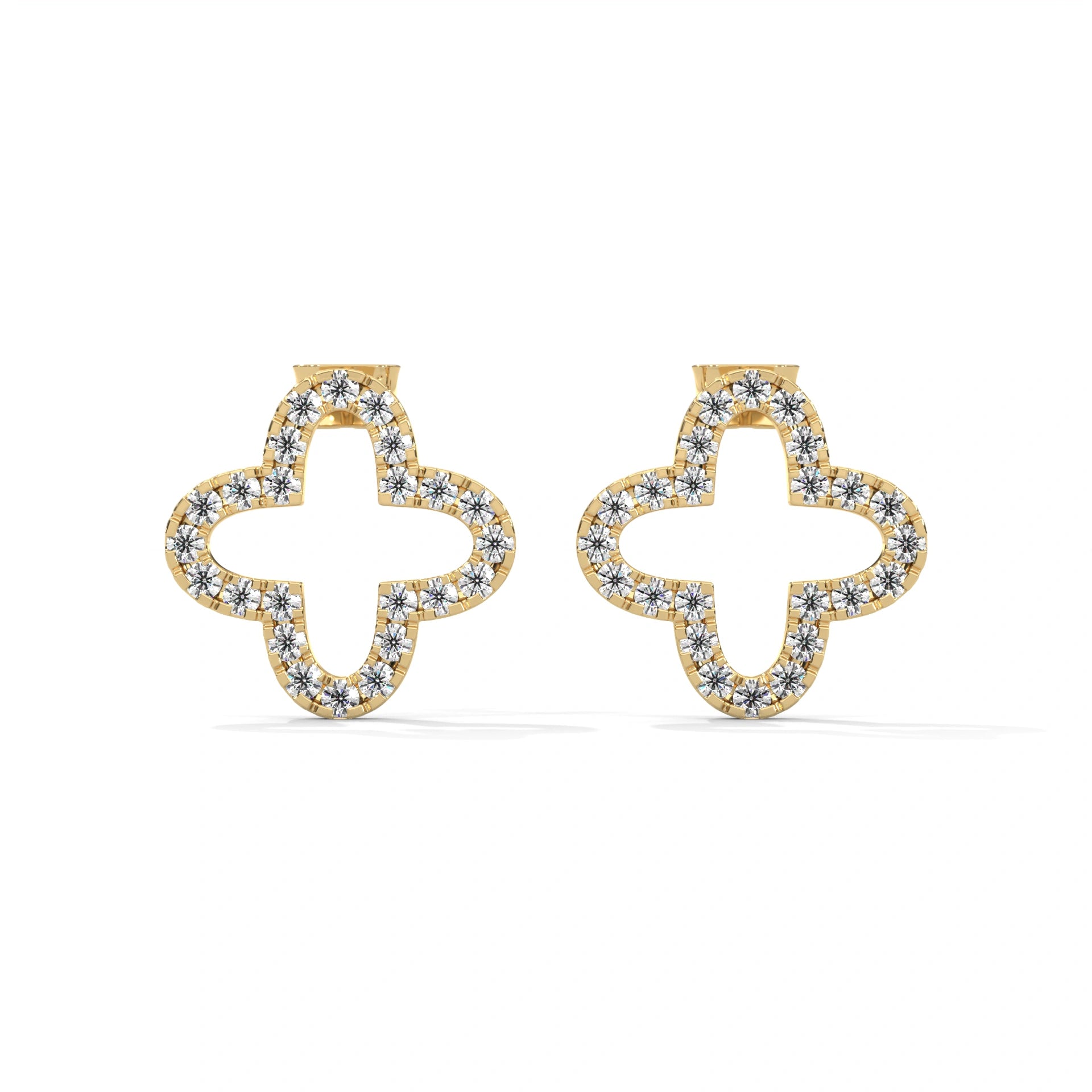 0.29 Ct TWT Diamond Clover Solid Gold Stud Earrings