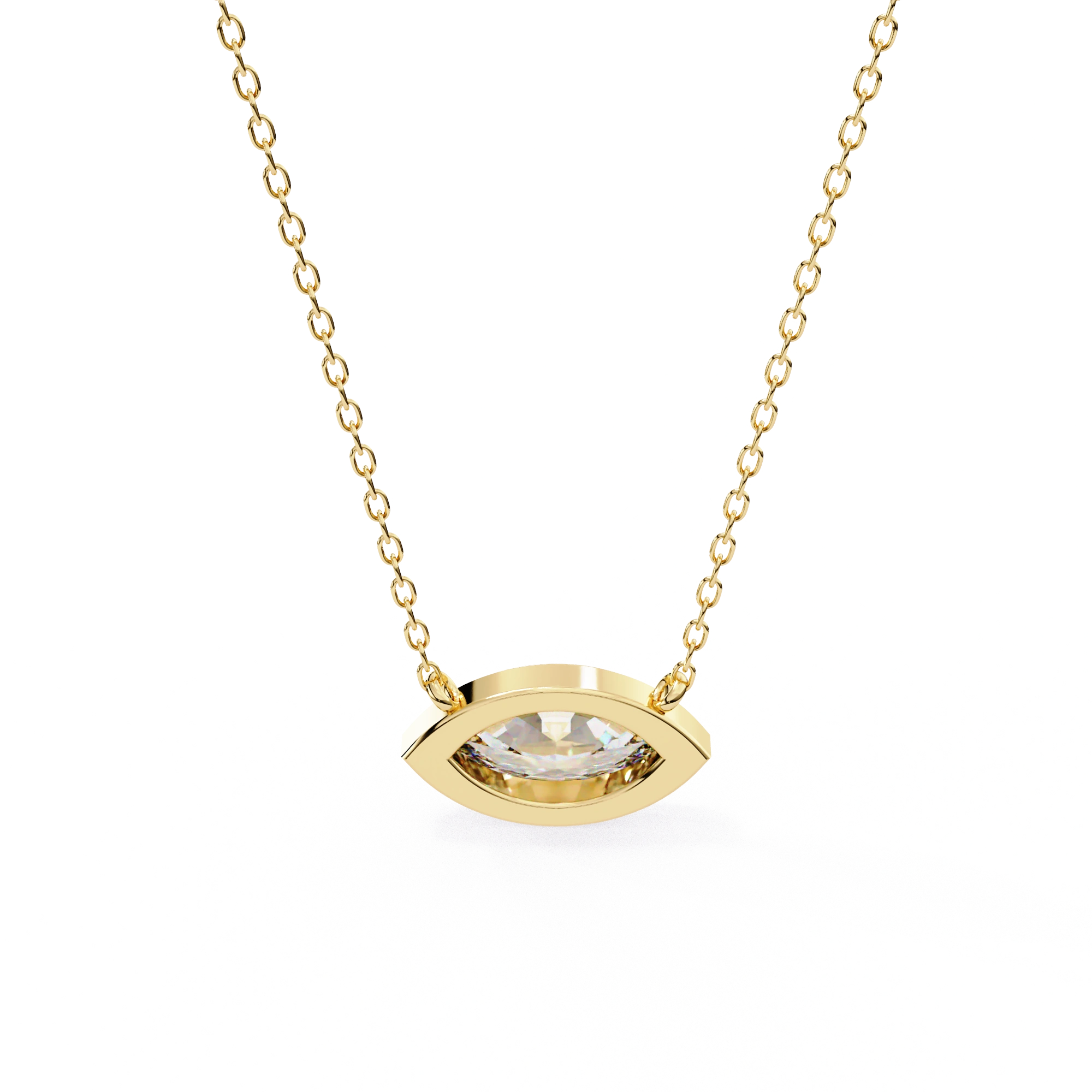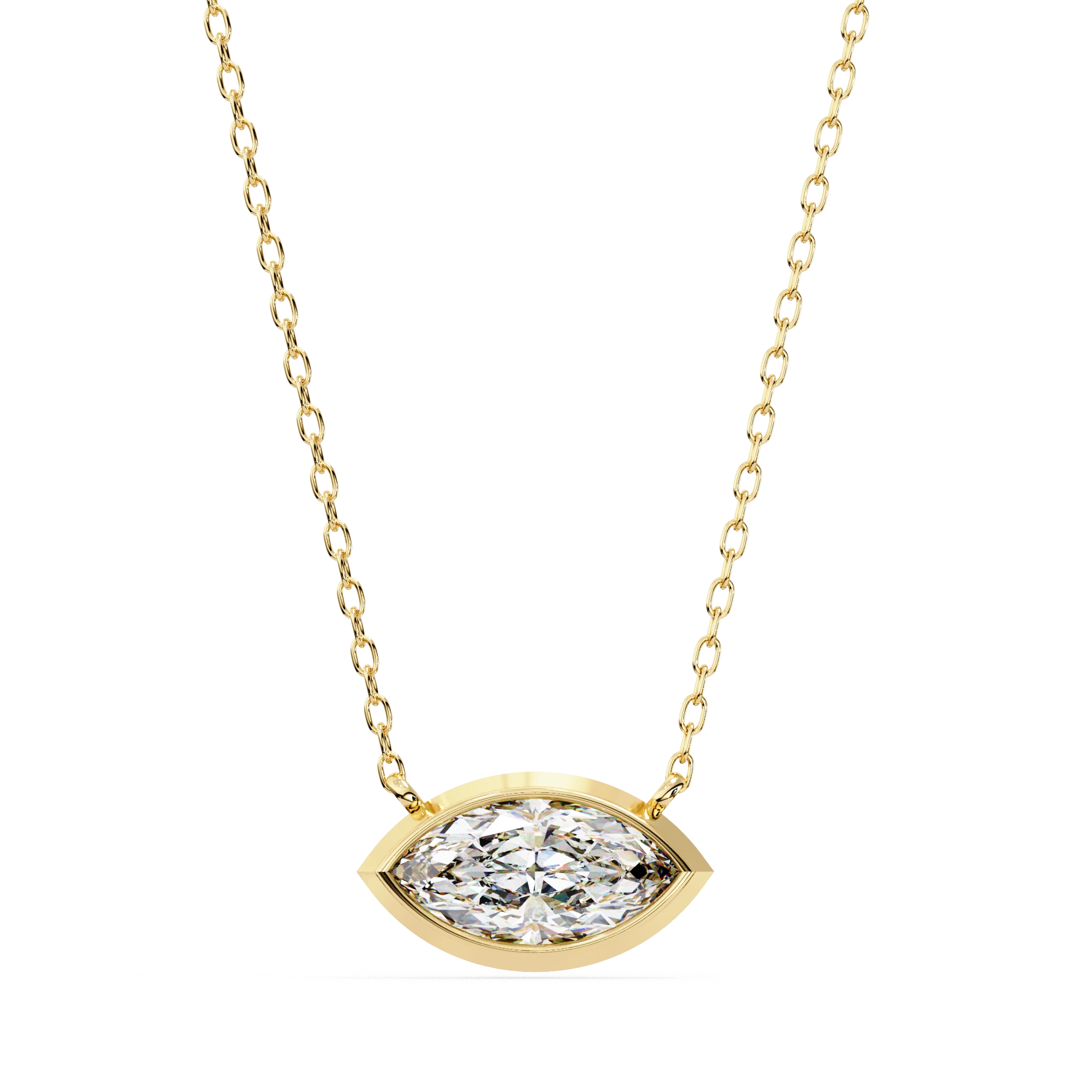 0.85ct Marquise Bezel Set Lab Diamond Necklace Yellow Gold