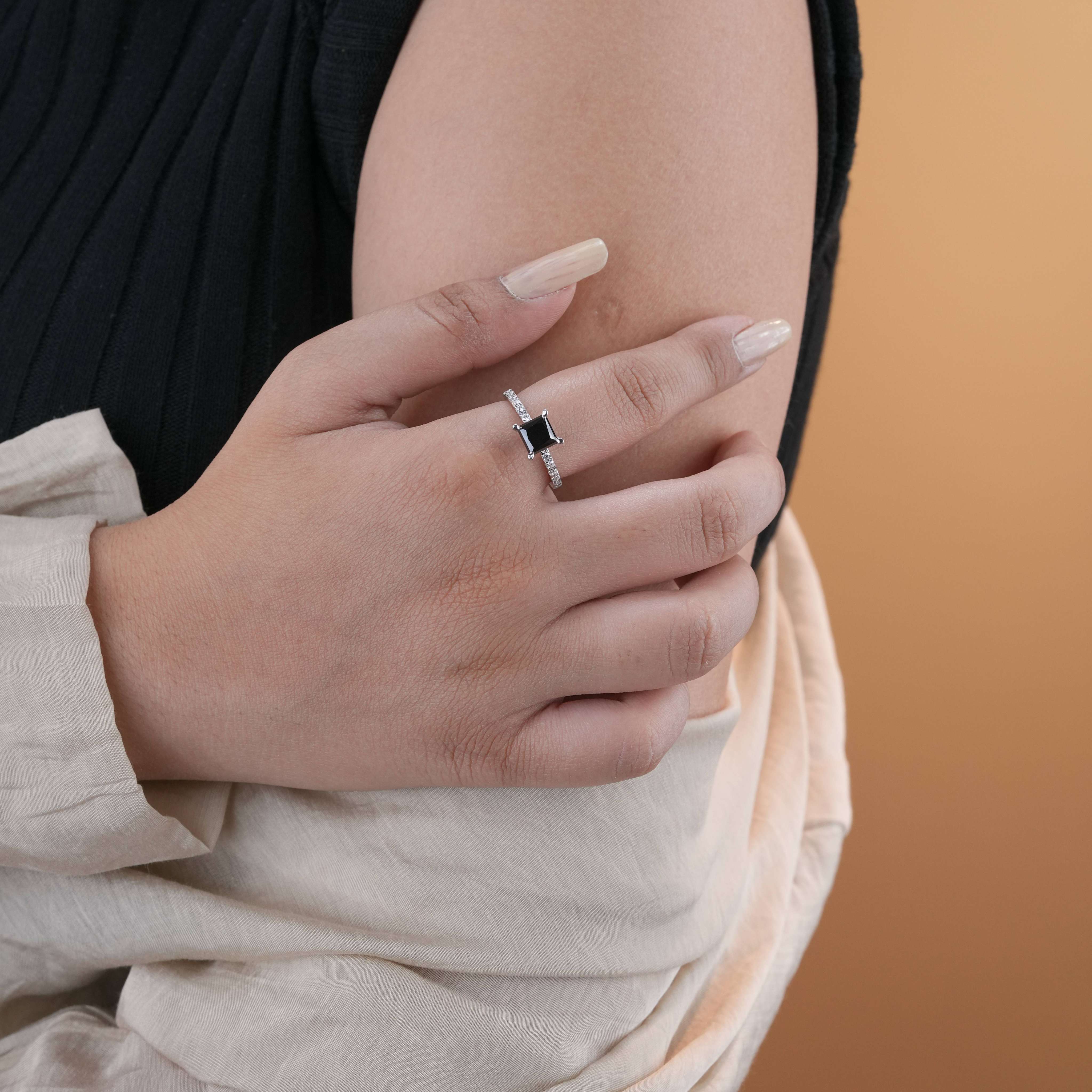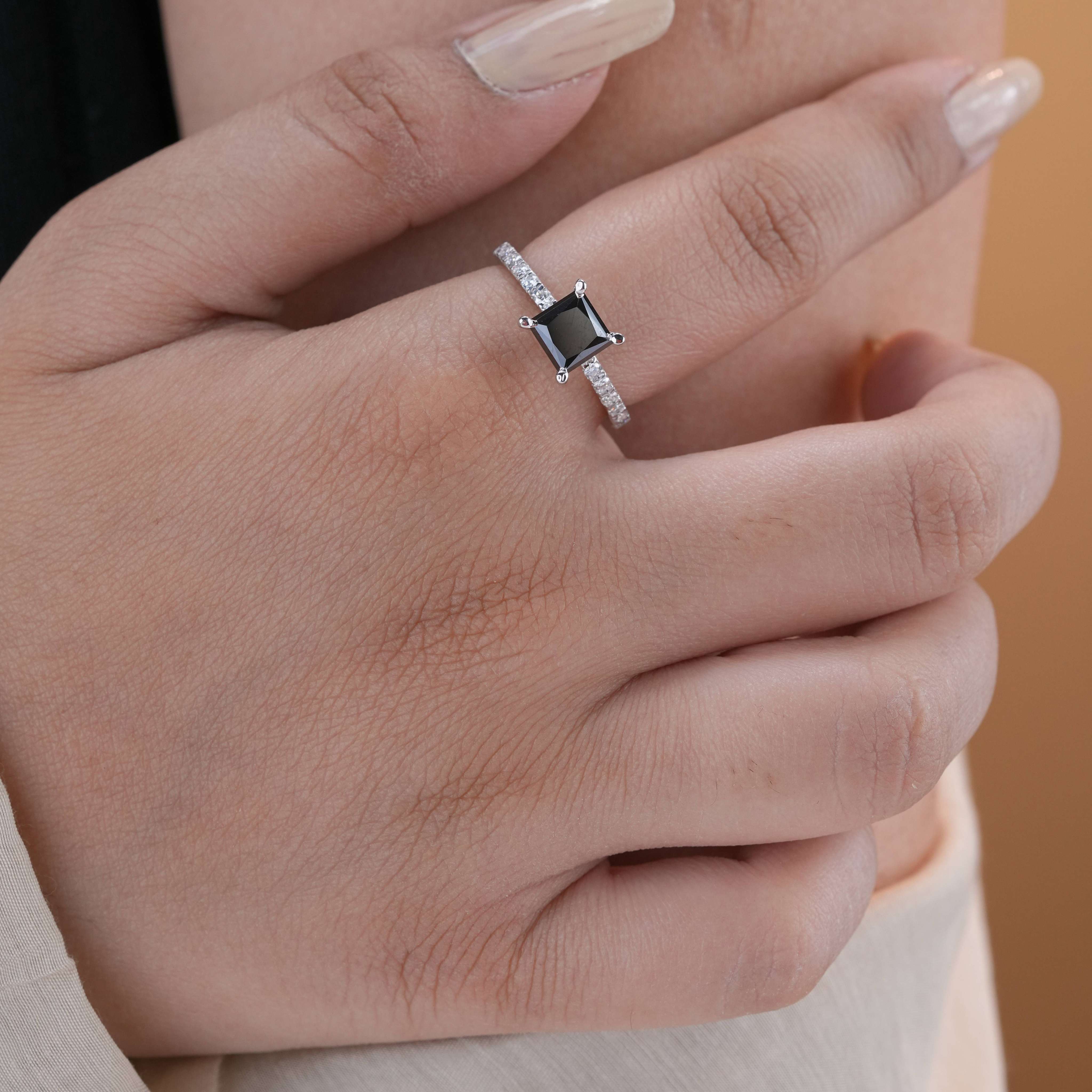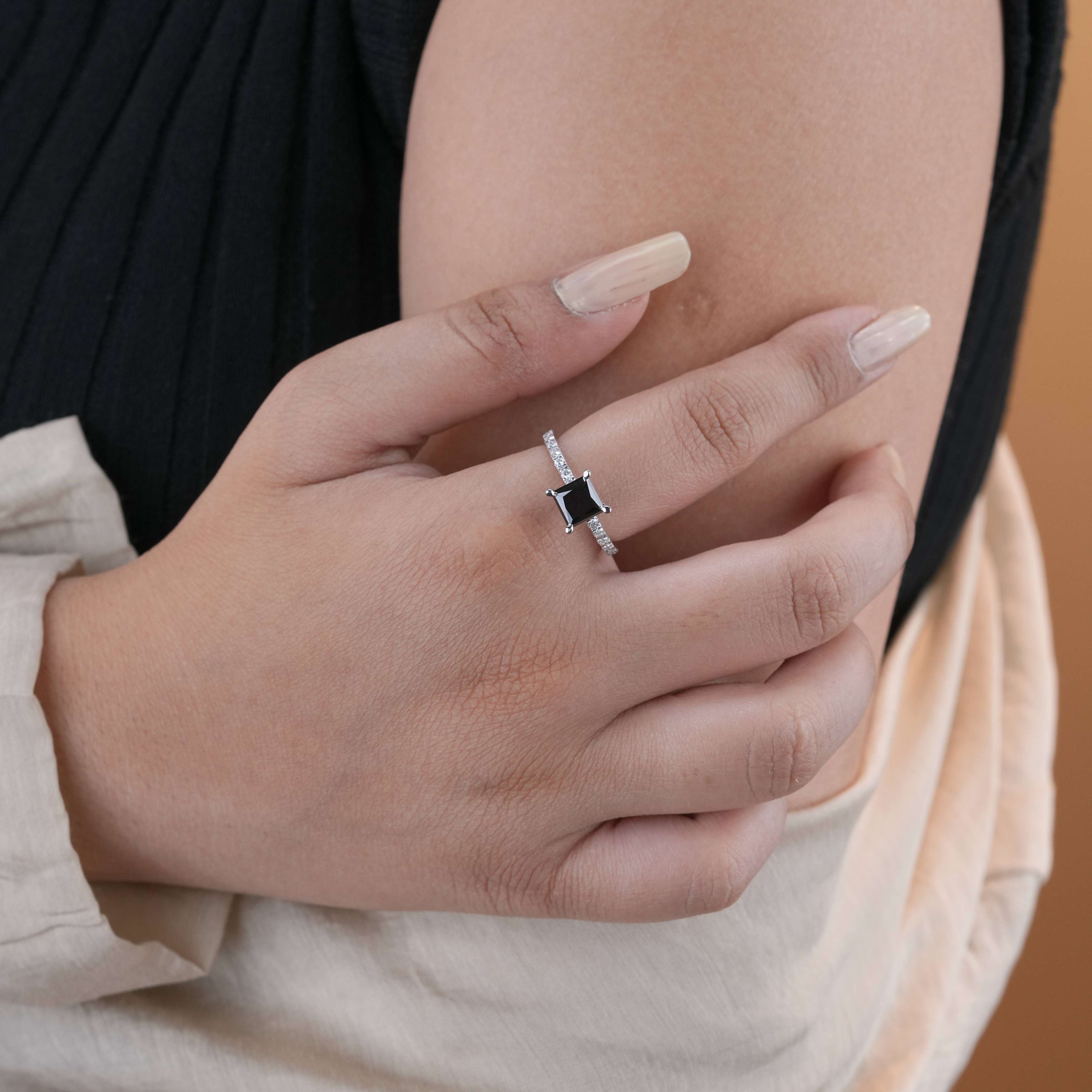 Discover This Striking Solitaire Black Diamond Ring, Featuring A 1.50 Carat Princess-Cut Black Diamond. Its Bold And Edgy Look Makes This Black Diamond Engagement Ring A Unique And Powerful Choice For Those Who Love A Modern Twist. Buy This Solitaire Black Diamond Ring For A Bold Look And Classy Look.