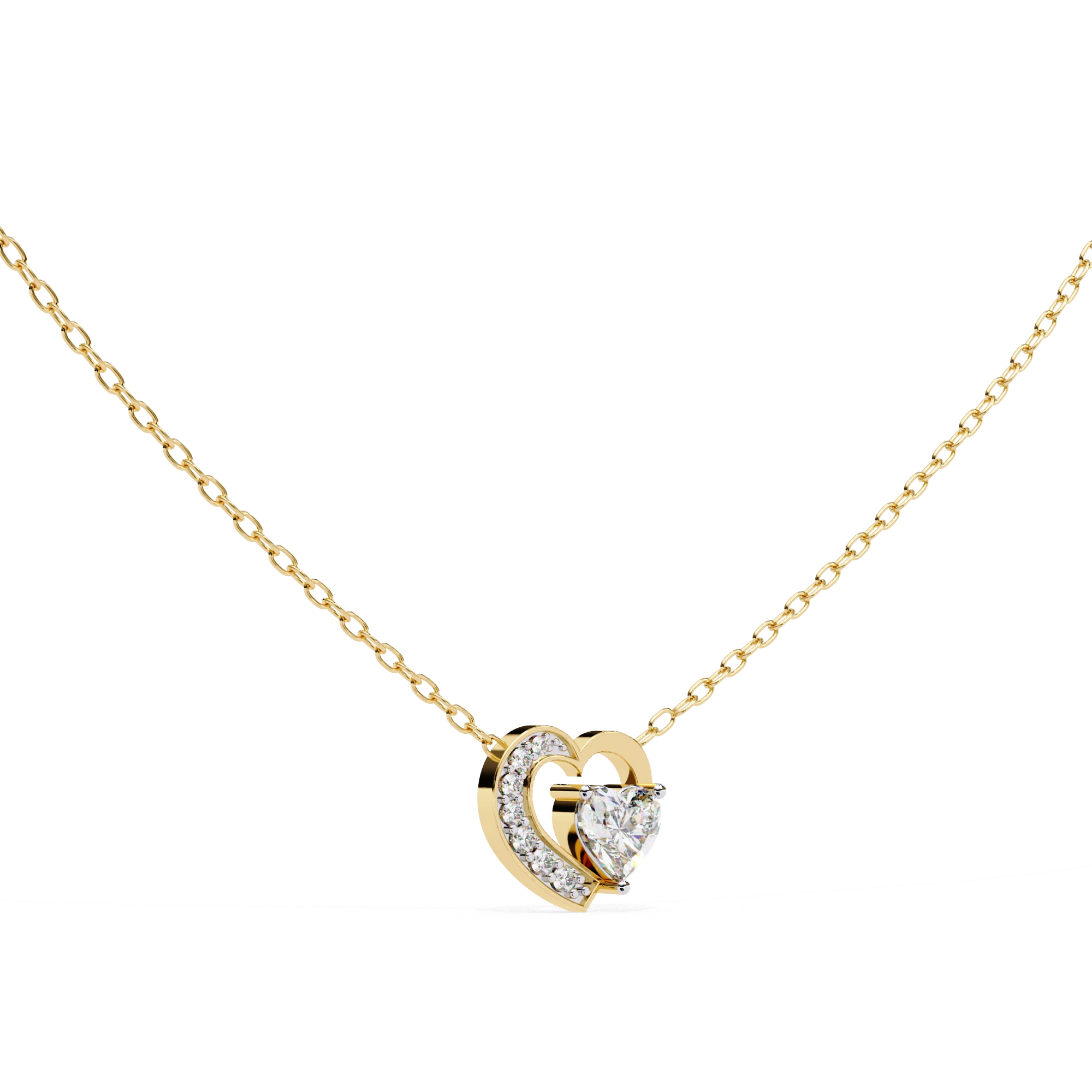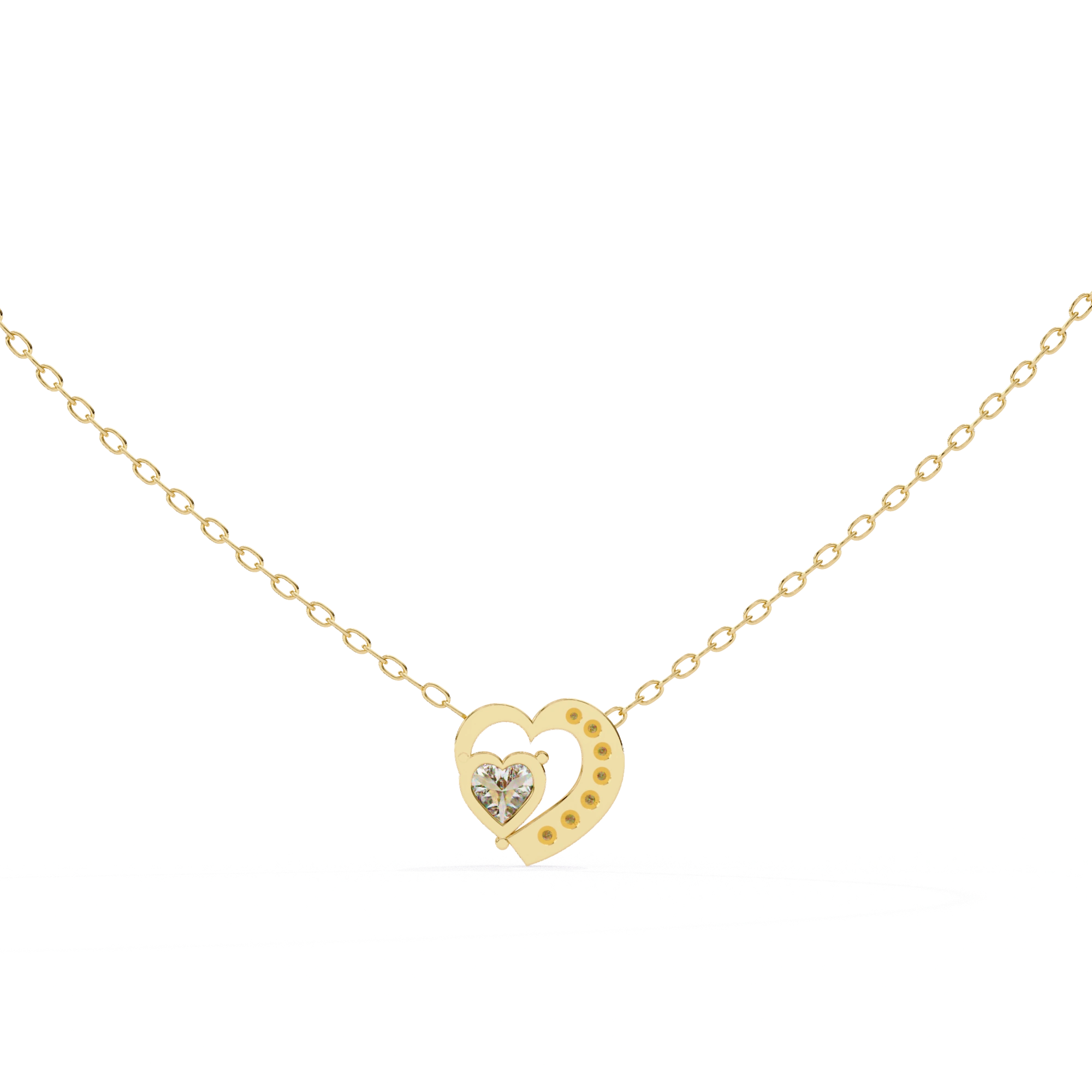 This 1 CT Heart Cut Lab Diamond Necklace features a center heart-shaped stone framed within a pavé diamond heart outline. The layered heart design creates depth, allowing the center stone to stand out while the surrounding pavé diamonds add texture and dimension.