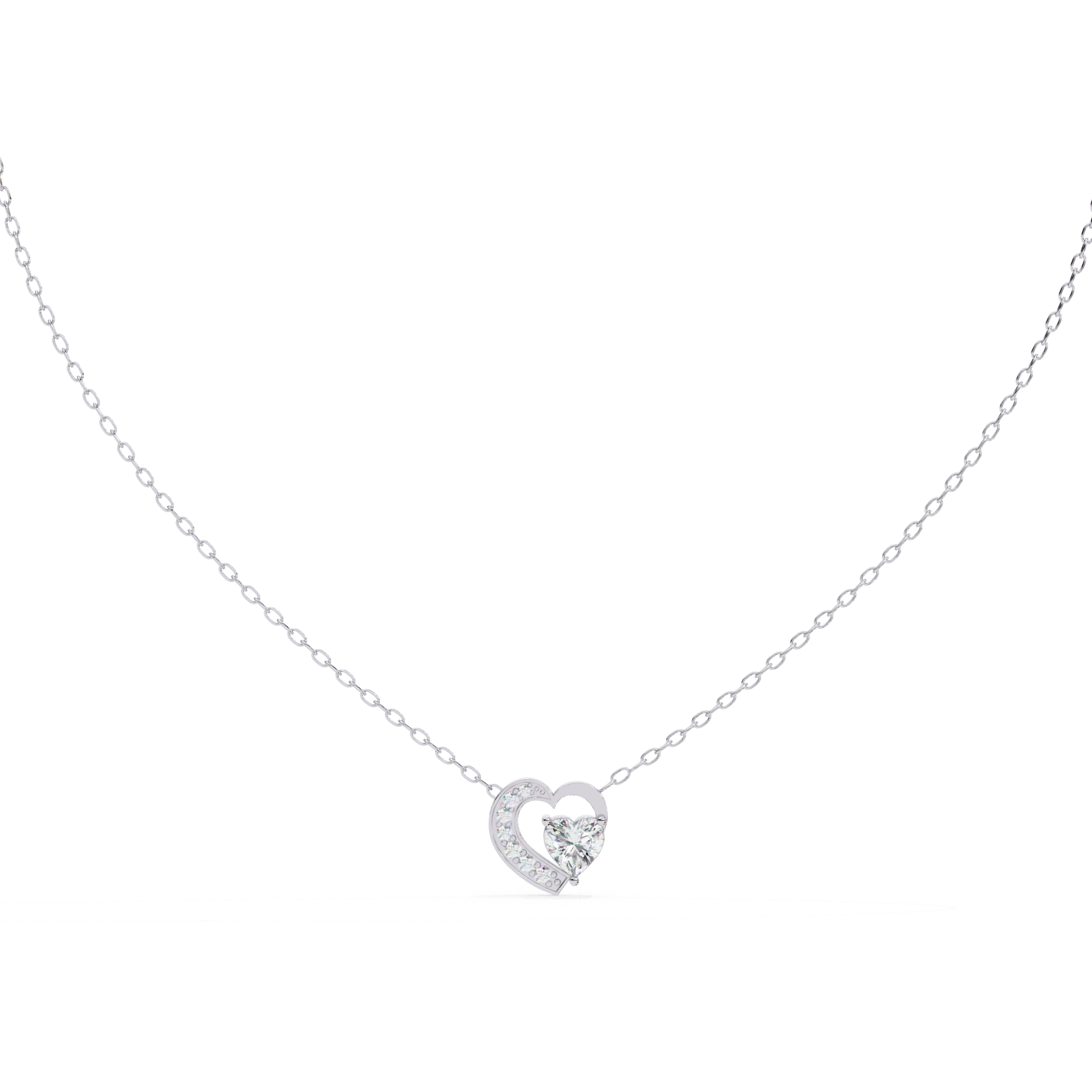 1 CT Heart Cut Lab Diamond Necklace In Pave Prong Setting