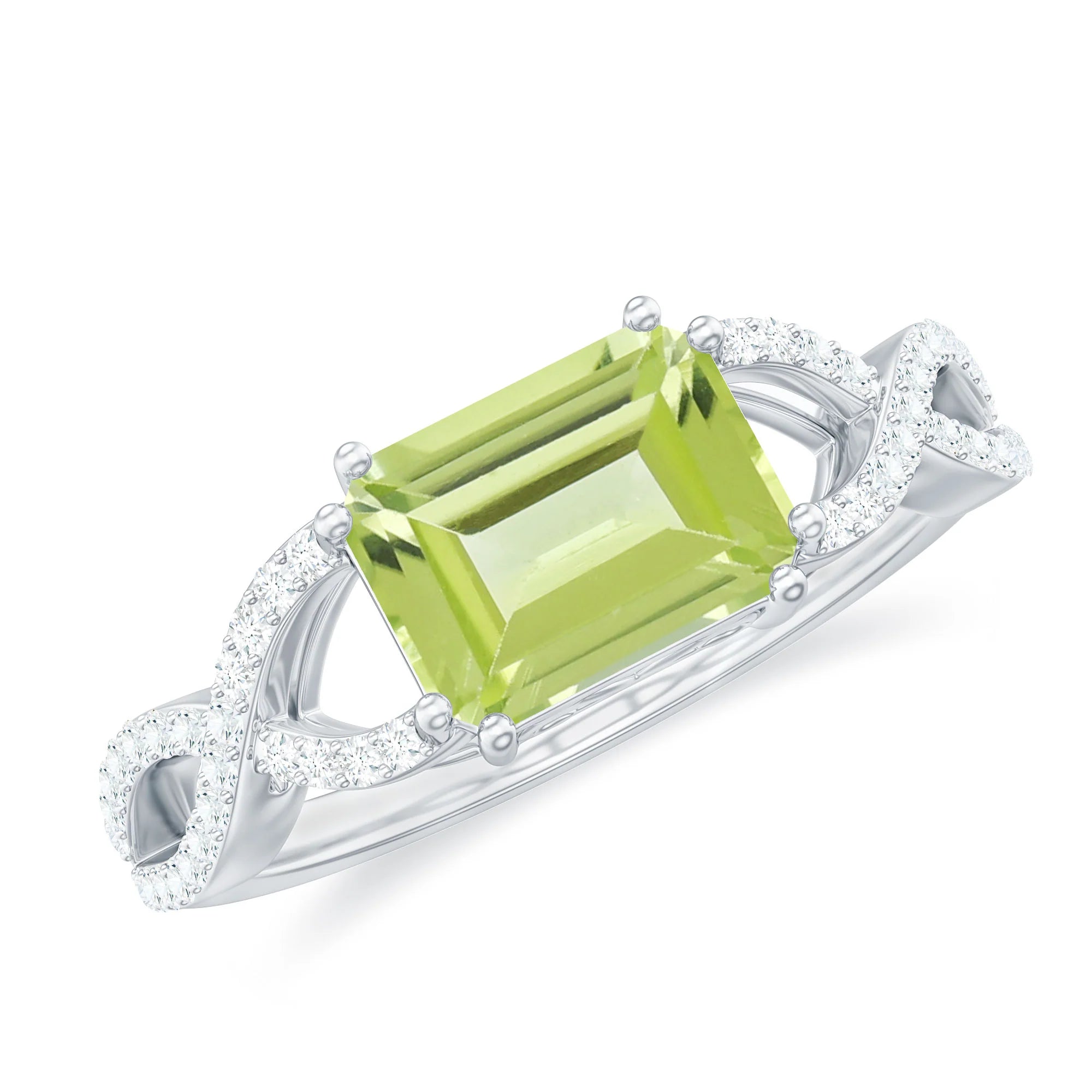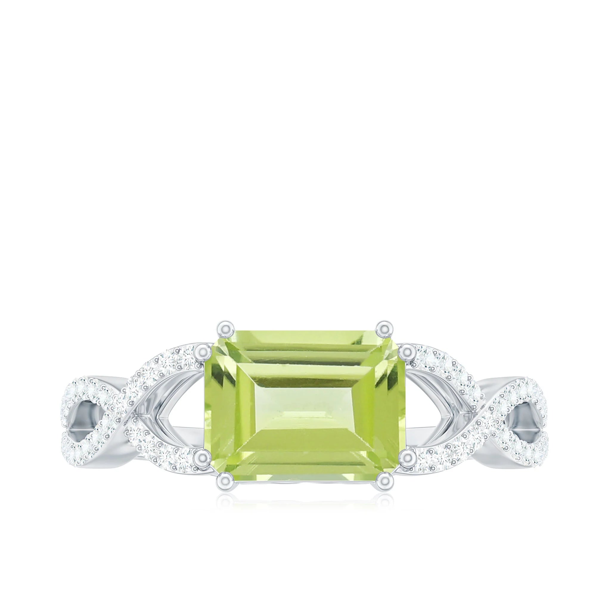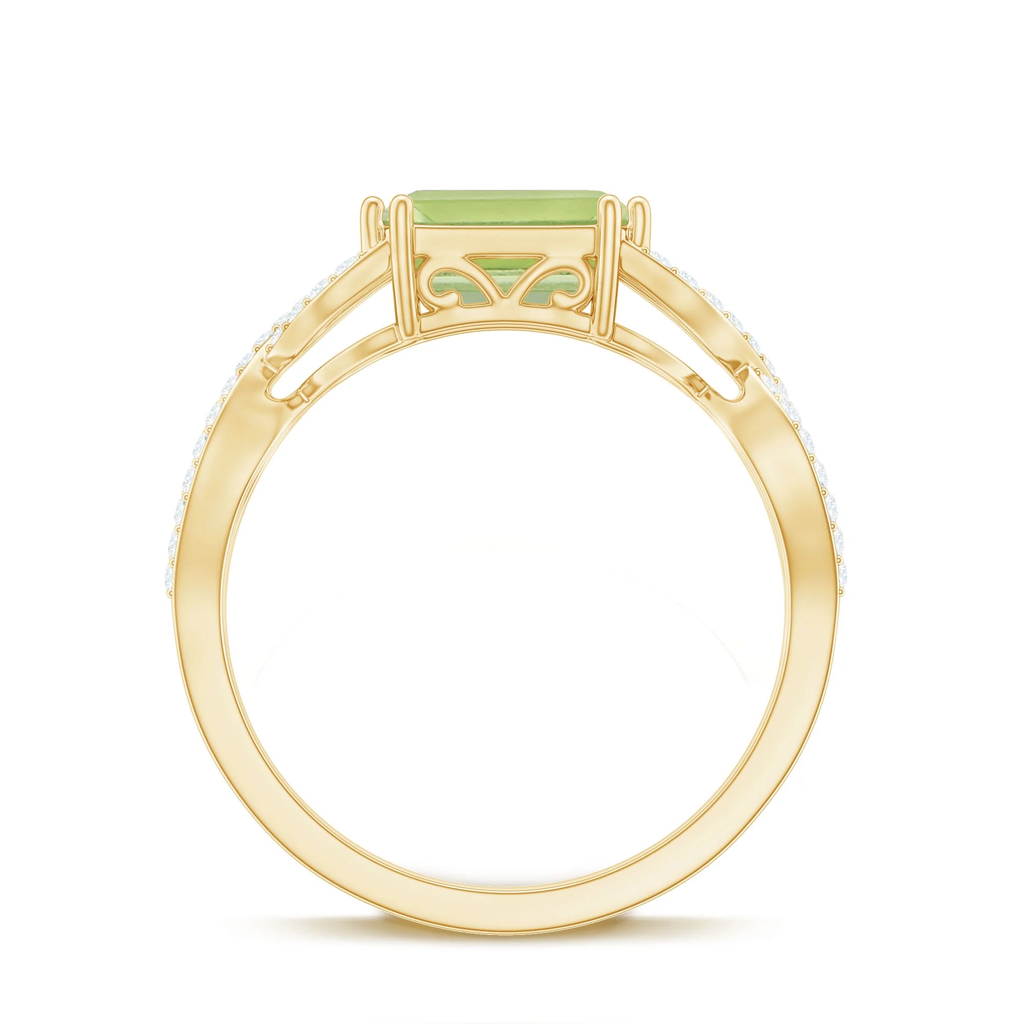 2 Carat Emerald Cut Prong Set Peridot Gemstone Engagement Ring