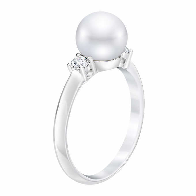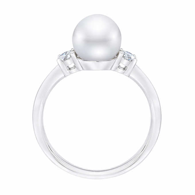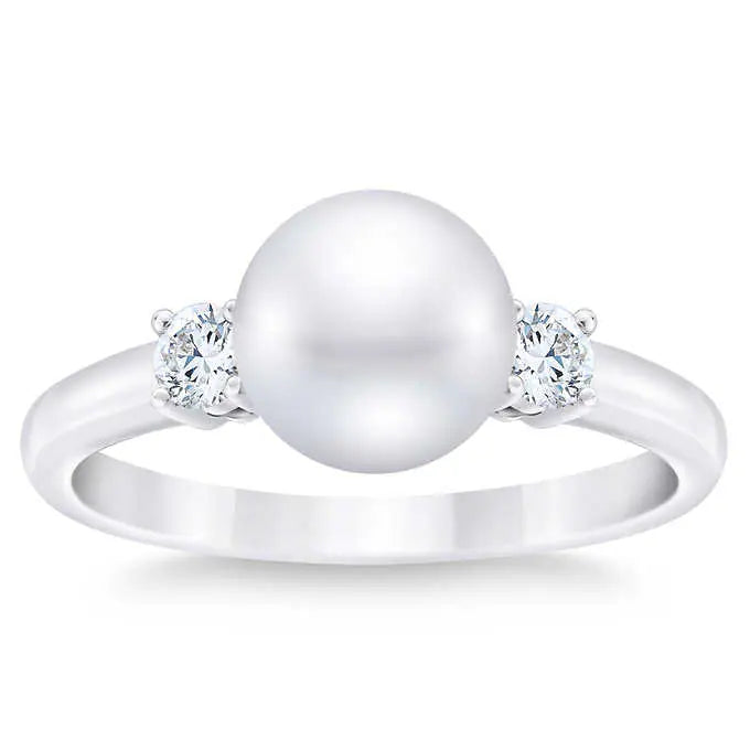 2.60 Ct Pearl Gemstone & Diamond Three Stone Ring