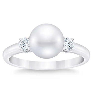 Shop This Beautiful Three Stone Ring Which Is Glowing With Its 2.60 Carat Pearl Flanked By Two Diamonds, And Blends Elegance With Its Timeless Design. This Pearl Gemstone ring & Diamond Three Stone Ring Is The Perfect Choice For Brides, Vintage Lovers, Or Anyone Looking For Refined Beauty With A Meaningful And Luxurious Charm For A Engagement Ring Or A Promise Ring.