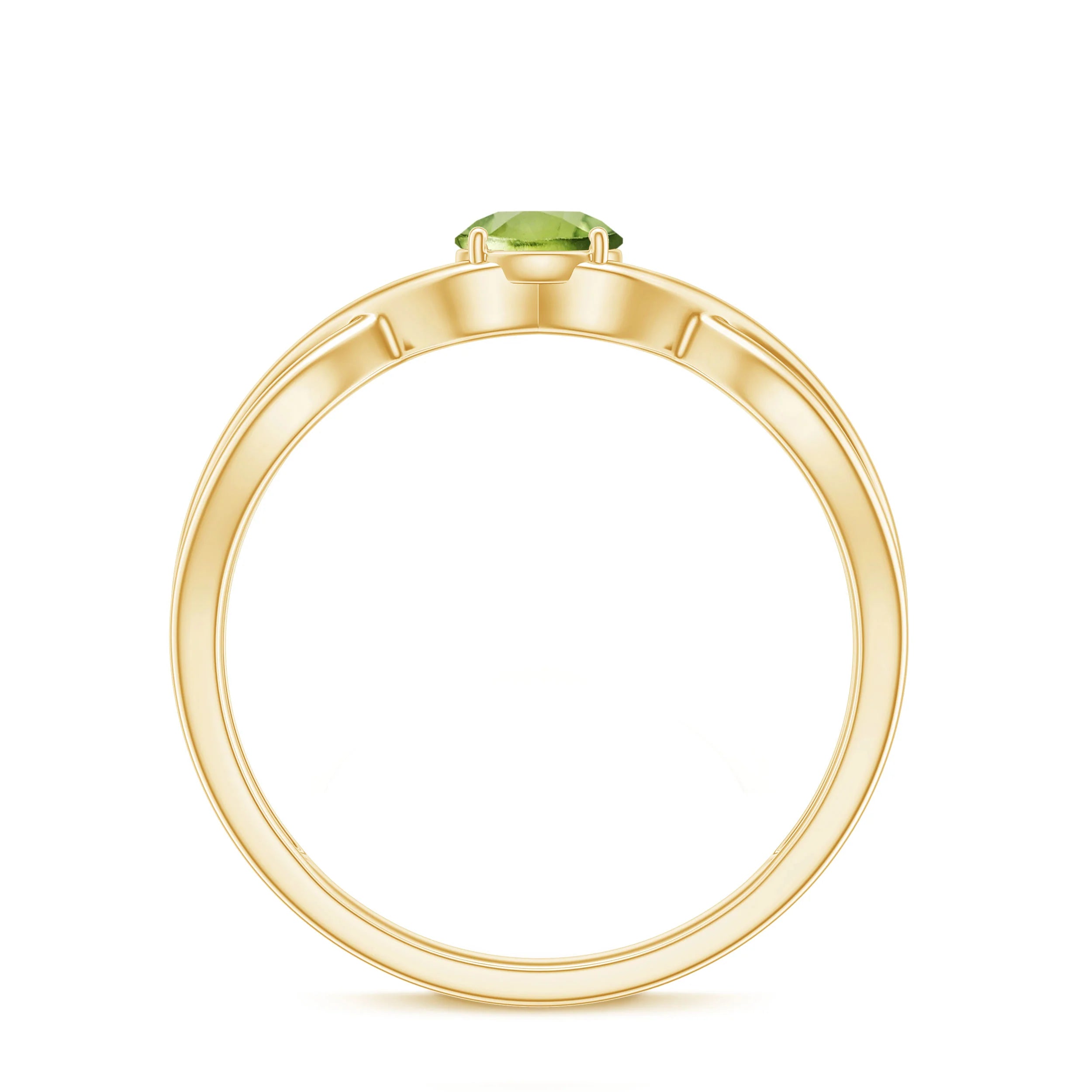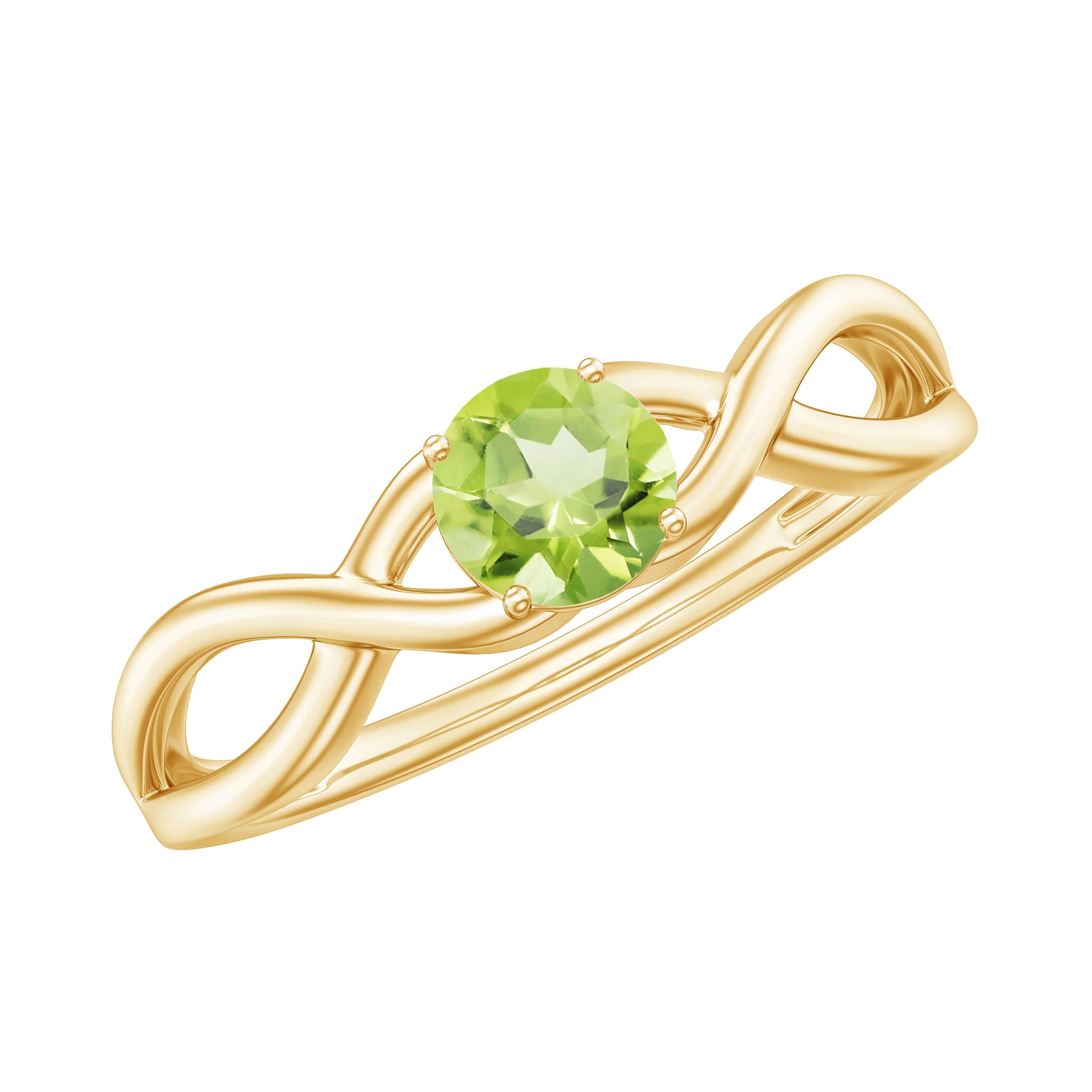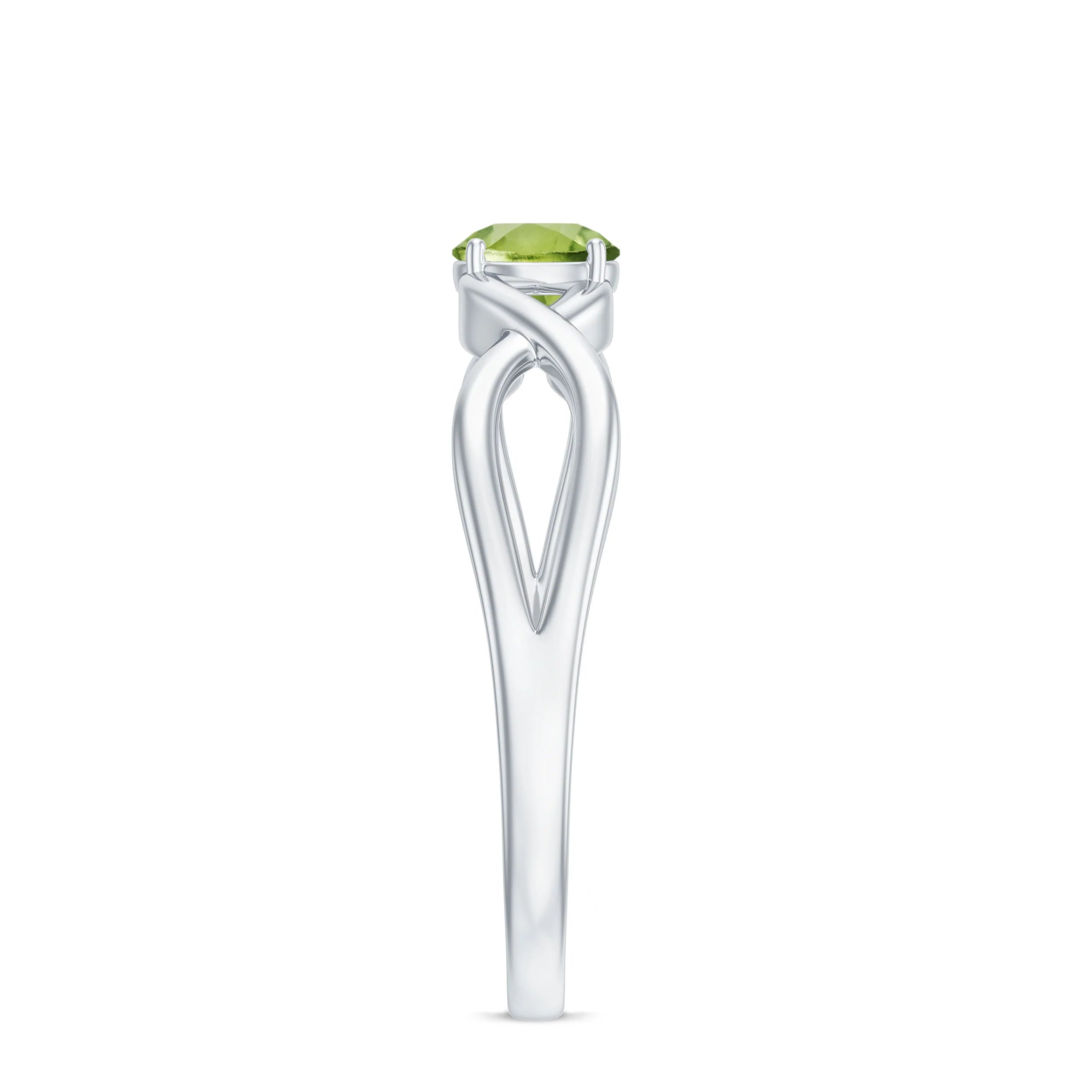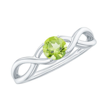 Surprise Her With A 2 Carat Round Peridot Gemstone Ring Which Has A Beautiful Prong Setting And A Twisted Band Design. Its Bright Green Glow And Elegant White Gold Setting Make It A Fresh, Modern Choice For Everyday Luxury And Engagement Rings.