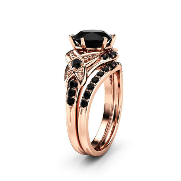 2 Ct Round Shaped Vintage Black Diamond Bridal Set Ring