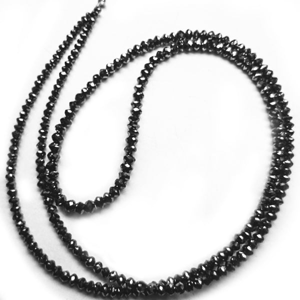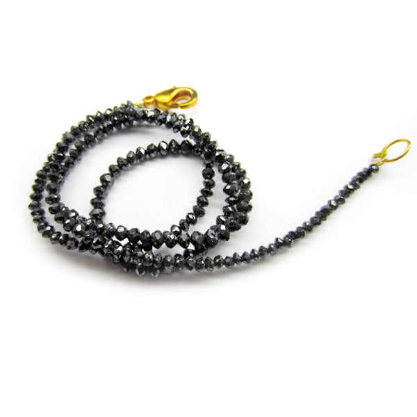24-Inch Long Natural Black Diamond Bead strands Necklace with 14k Gold Necklace Clasp. Faceted Black Diamond Beads strand Are an Affordable High-Quality and Unique Piece of Diamond Fine Jewelry that Can Be Used Regularly, at An Event, or Can Be a Gift to Someone. We Also Offer You to Buy a Personalized Black Diamond Necklace. Contact Us to Purchase the Desired Style Item.