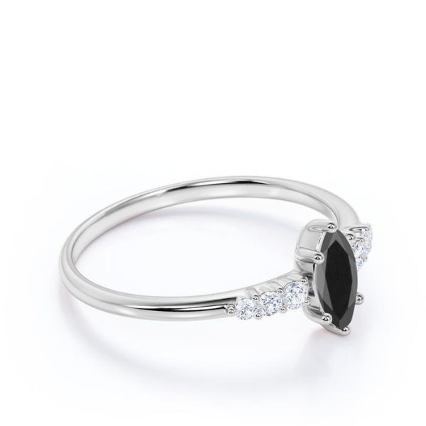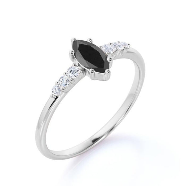 2 Carat Marquise And Round Cut black and white diamond engagement ring