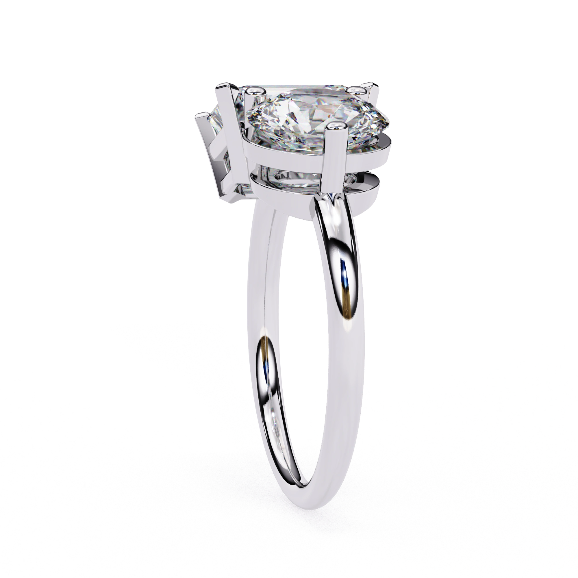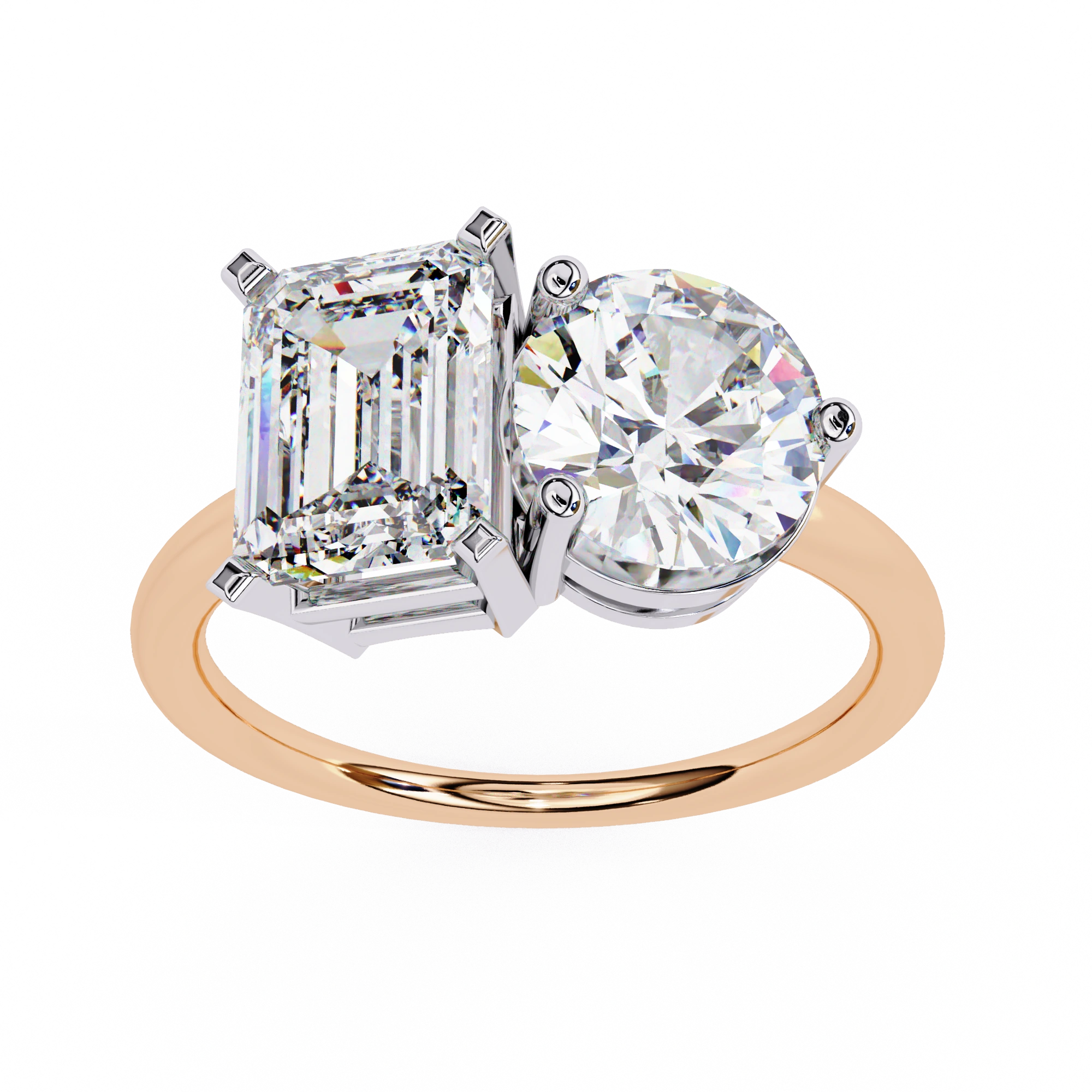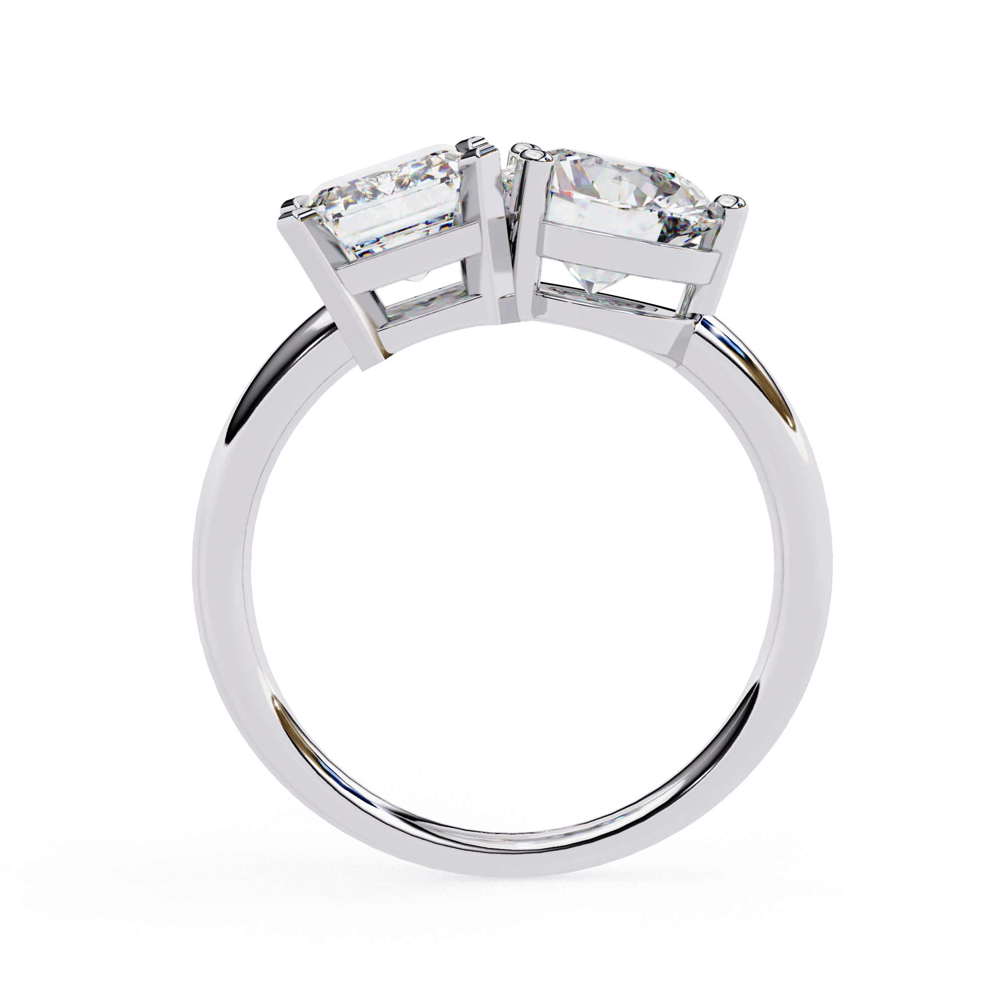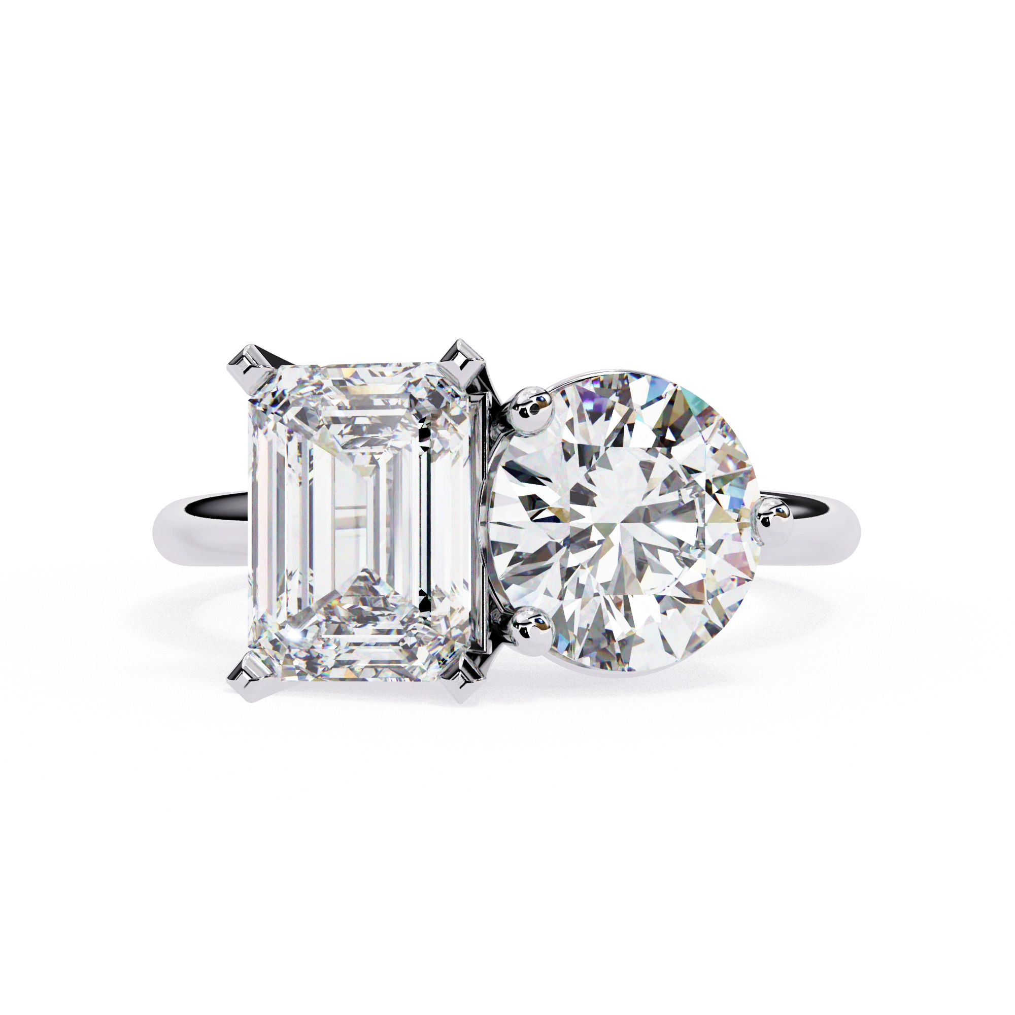 The Toi Et Moi Ring Features An Emerald-Cut Diamond And Round Cut Diamond, Which Is Synthetically Created In A Laboratory, Along With Numerous Truly Cut Diamonds That Add To The Overall Total Weight Of 4.25 Carats And Are Set In A White Gold Mounting. The Two Stones Represent Two People Together And Apart, Which Adds Symbolism To Your Relationship.