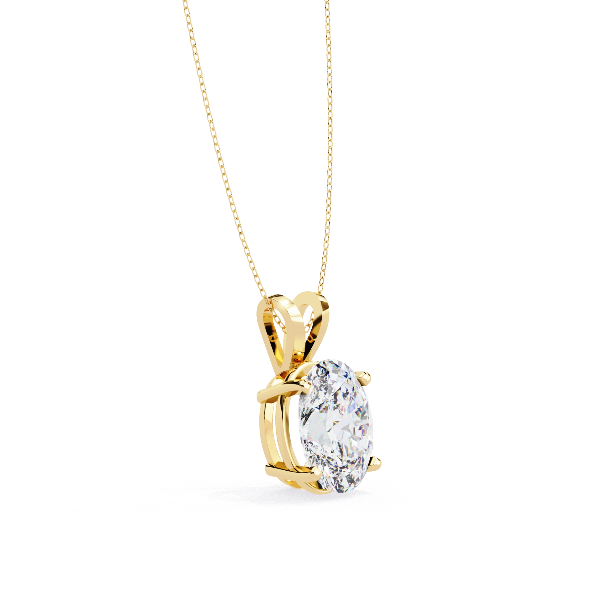 Oval Lab Diamond Solitaire Pendant Double Bail Yellow Gold