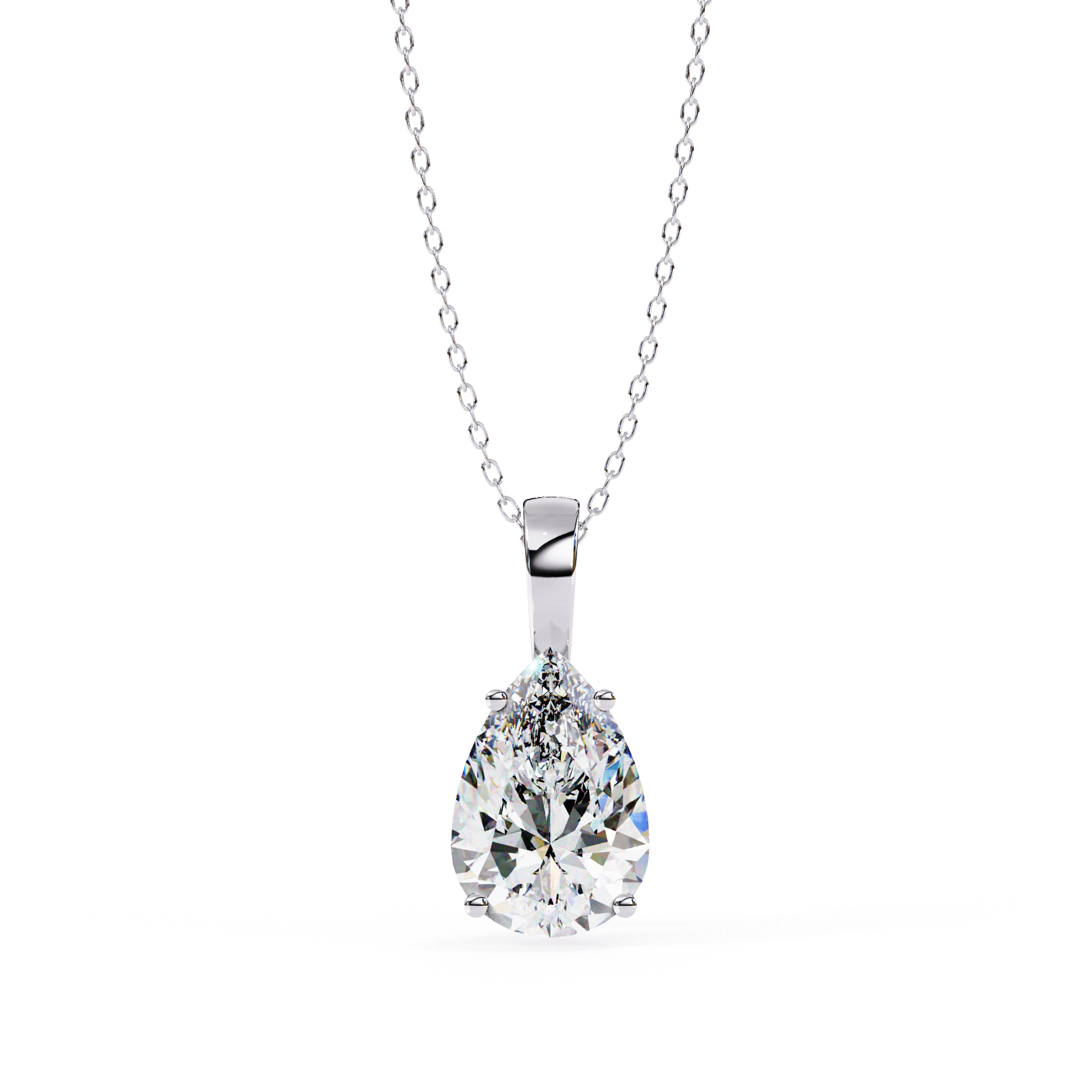 Make a statement with this stunning 2.61 Carat Pear Shaped Diamond Solitaire Pendant, crafted to impress with its teardrop design. The beautiful Pear Shaped Lab Diamond boasts the brilliance of a round cut and the elegance of a marquise cut, resulting in truly outstanding sparkle and elongated beauty.
