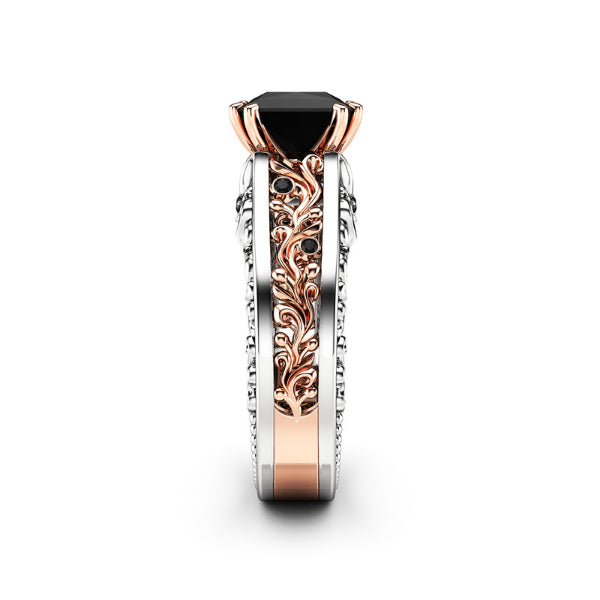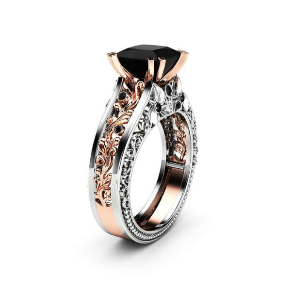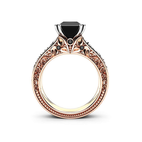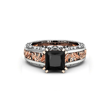 1.50 Ct Princess Cut Two-Tone Prong Set Vintage Black Diamond Ring