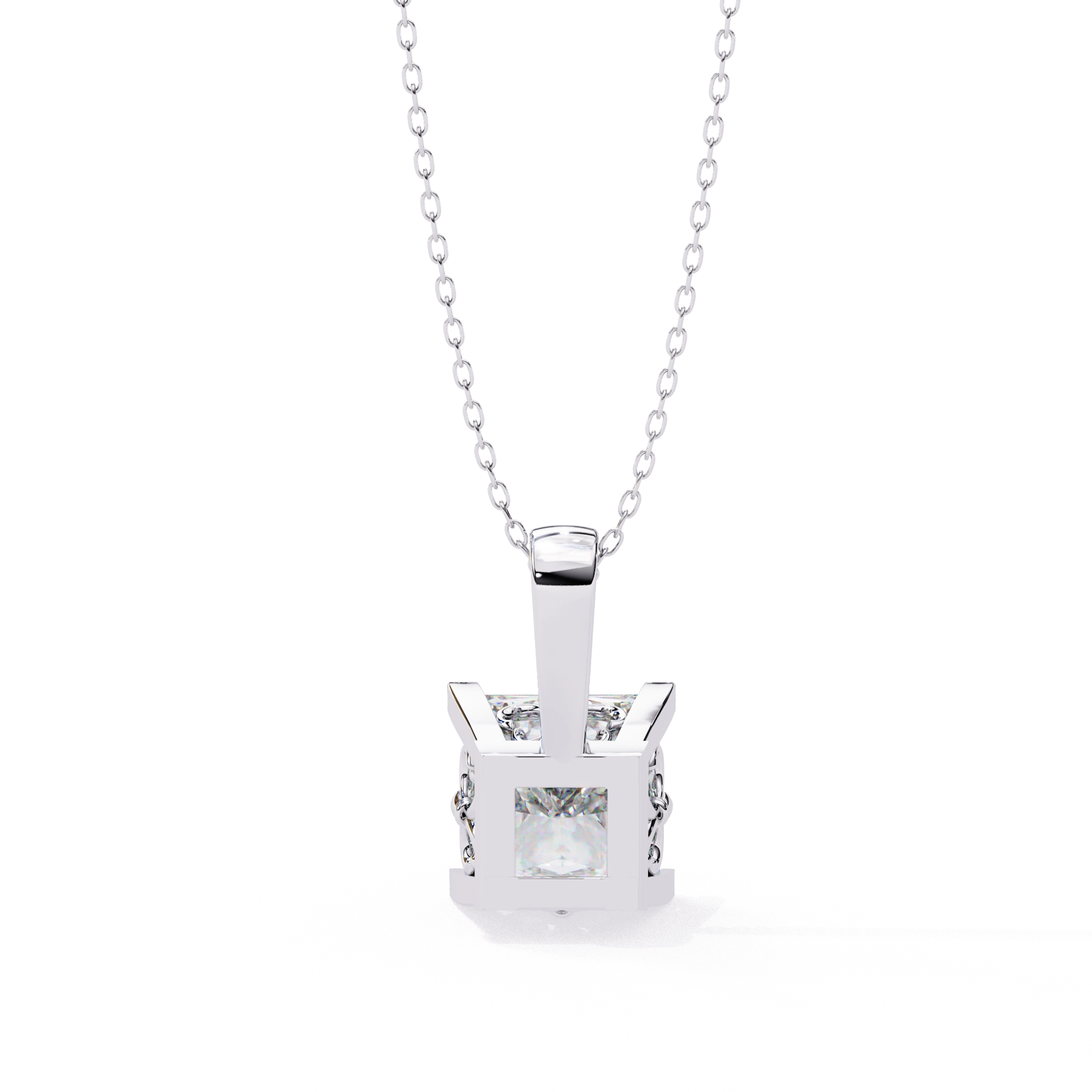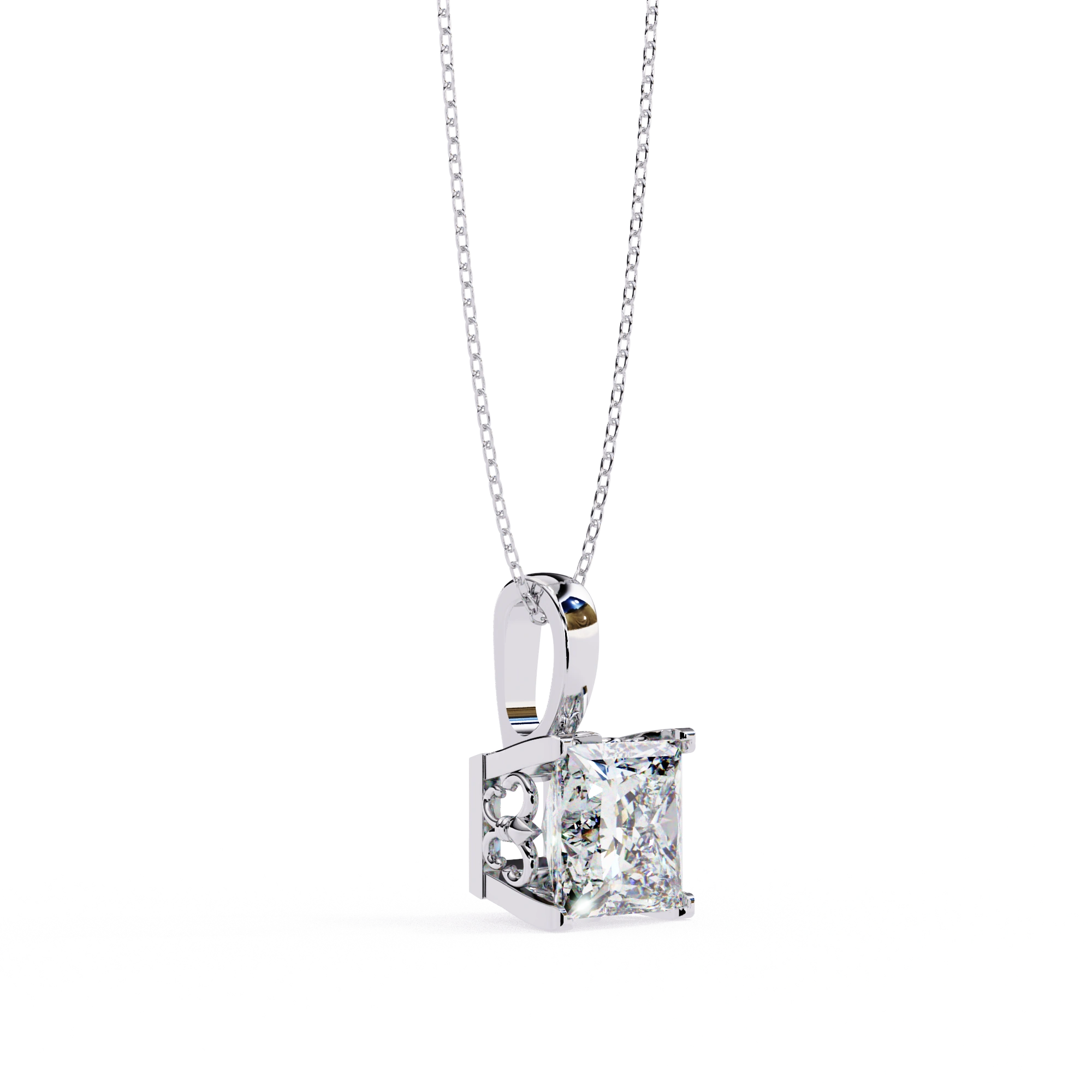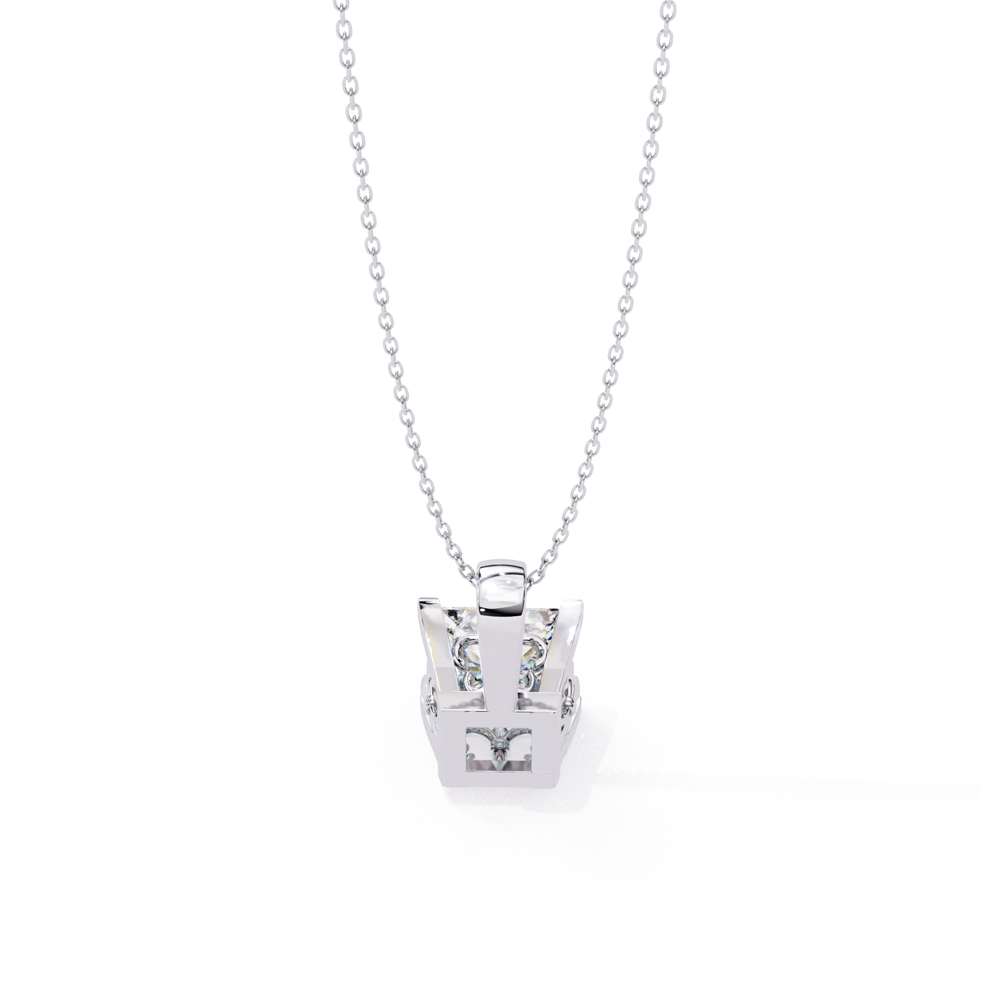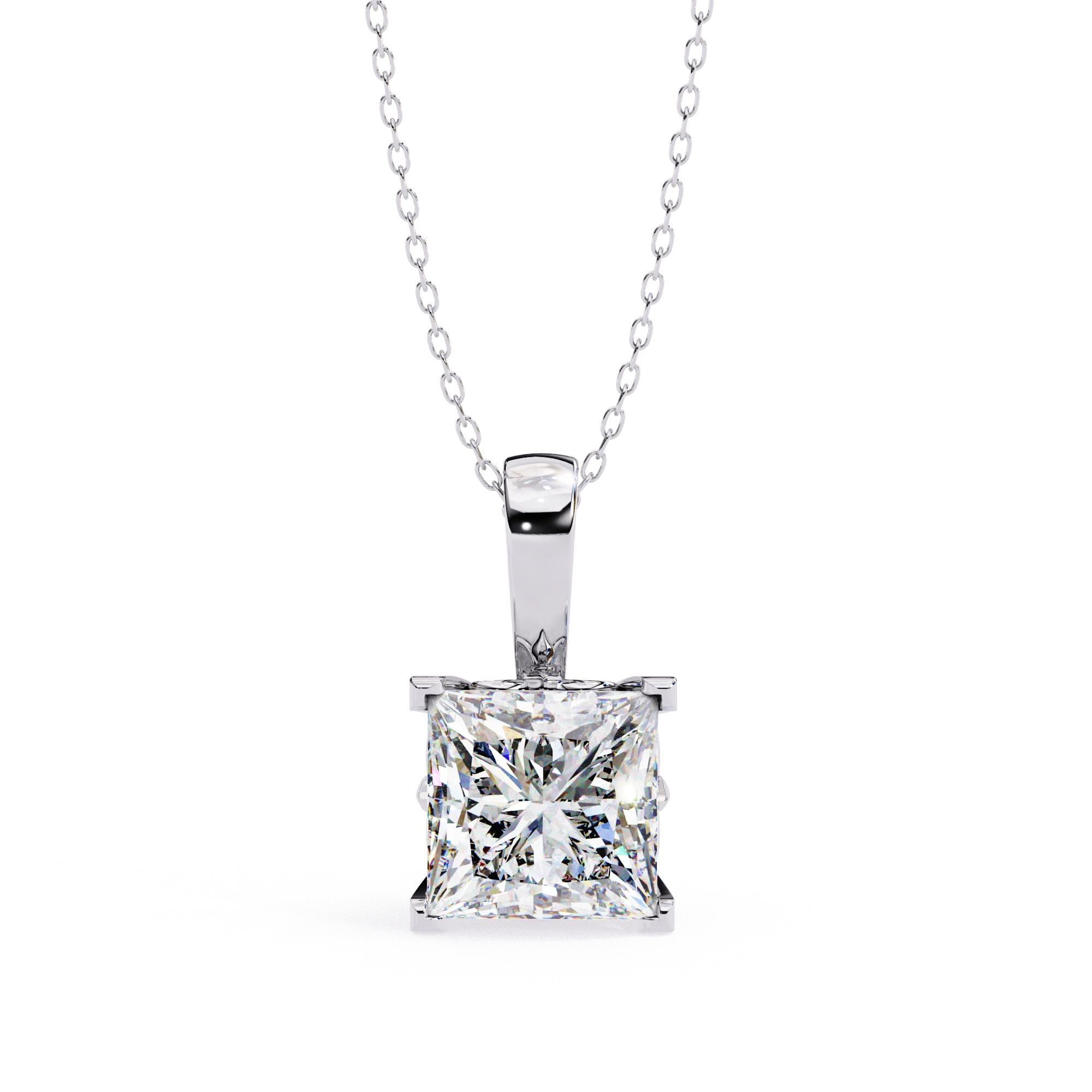 This Lab Grown Diamond Pendant is designed in a strong and beautiful Bold White Gold Diamond Pendant setting, offering both strength and modern luxury. The structured solitaire setting showcases the square shape of the diamond, exuding confidence and a bold statement.